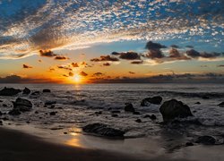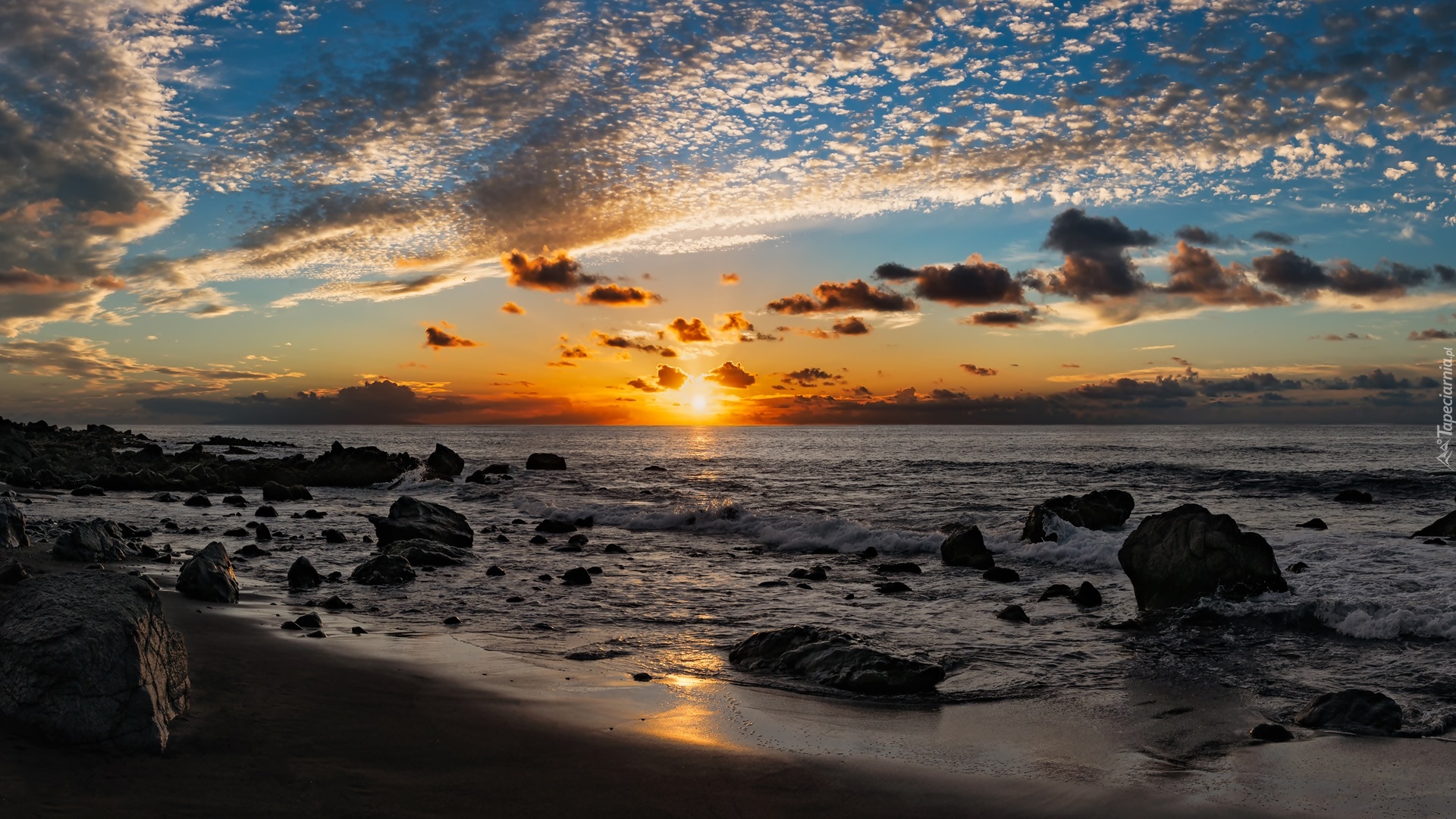 Edytor tapety: Chmury pierzaste o zachodzie słońca nad morzem