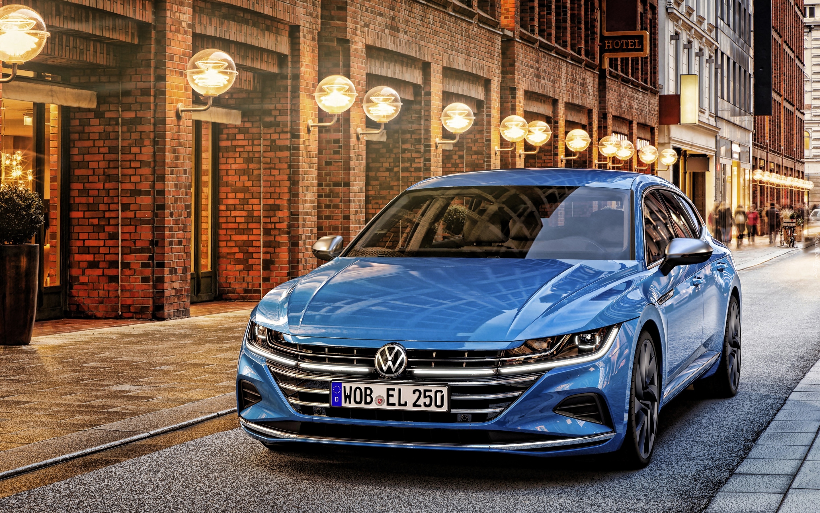 Edytor tapety: Niebieski Volkswagen Arteon na ulicy