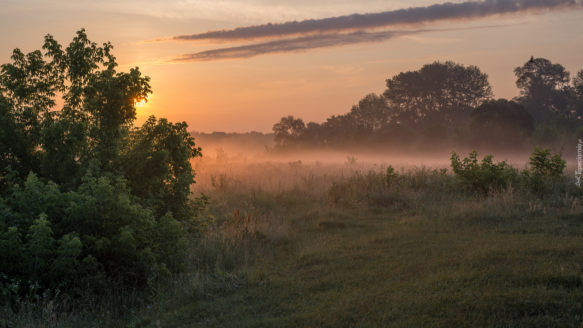 Edytor tapety: Poranna mgła unosząca się nad łąką