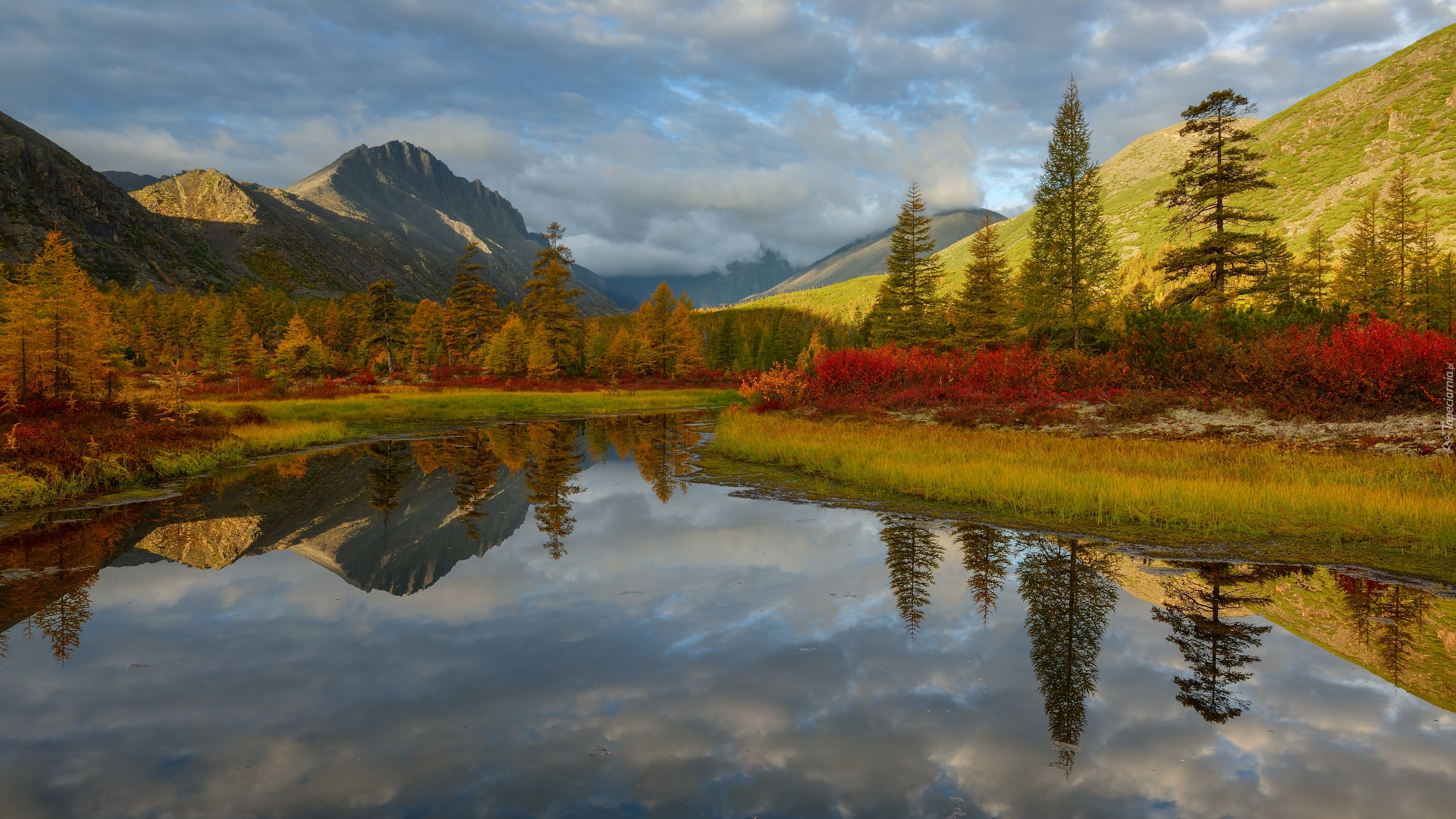 Edytor tapety: Kolorowe drzewa dookoła jeziora Jack London
