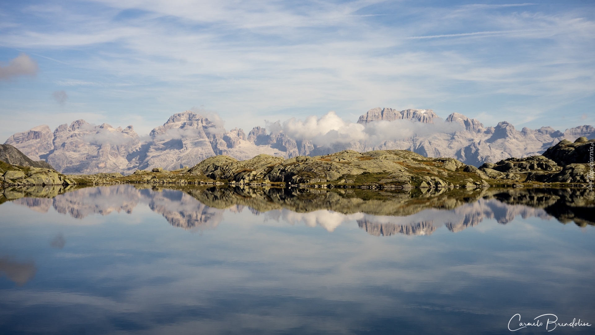 Edytor tapety: Widok znad włoskiego jeziora Lage Nero na Dolomity