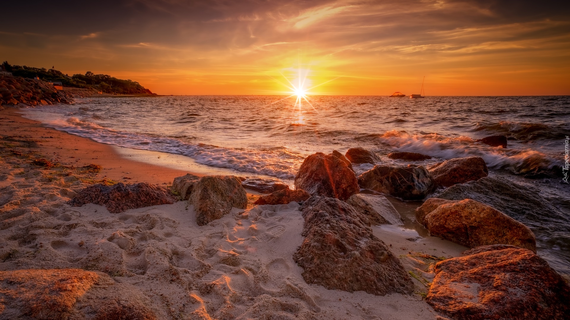 Edytor tapety: Kamienie na plaży Breakwater Beach w stanie Massachusetts