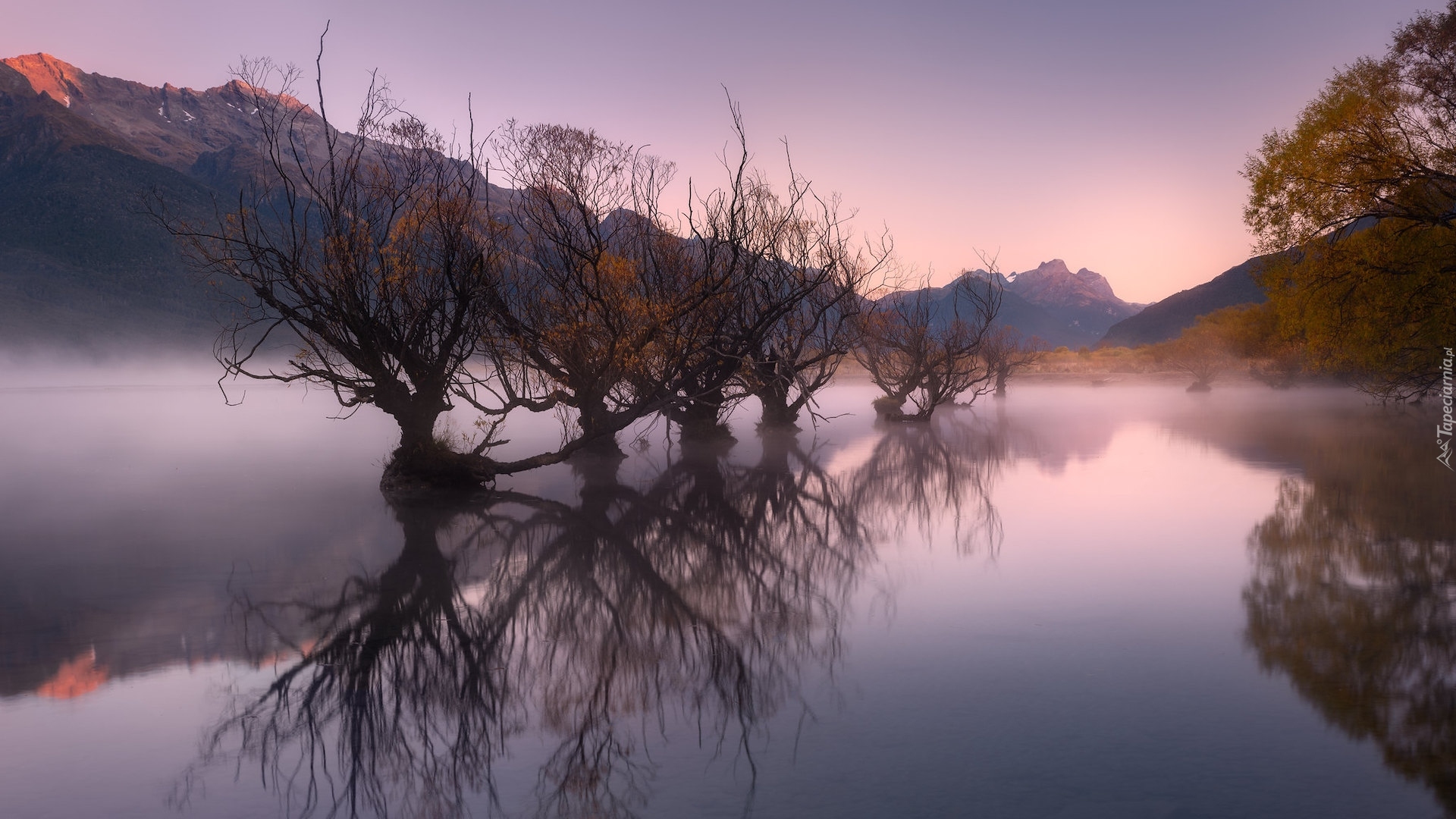 Edytor tapety: Wierzby na jeziorze Wakatipu w Glenorchy