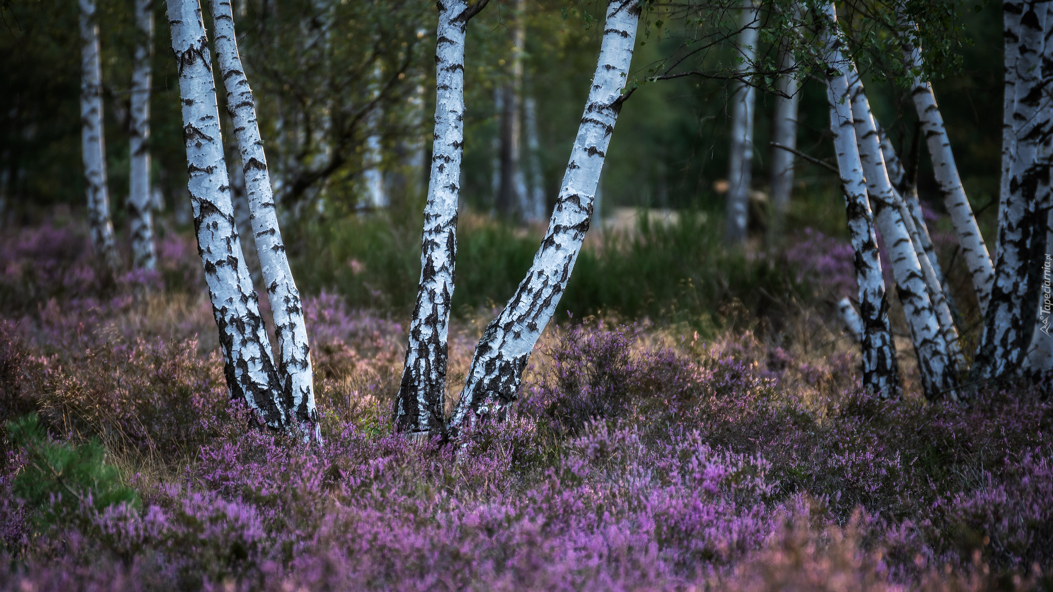 Edytor tapety: Wrzosy pod brzozami