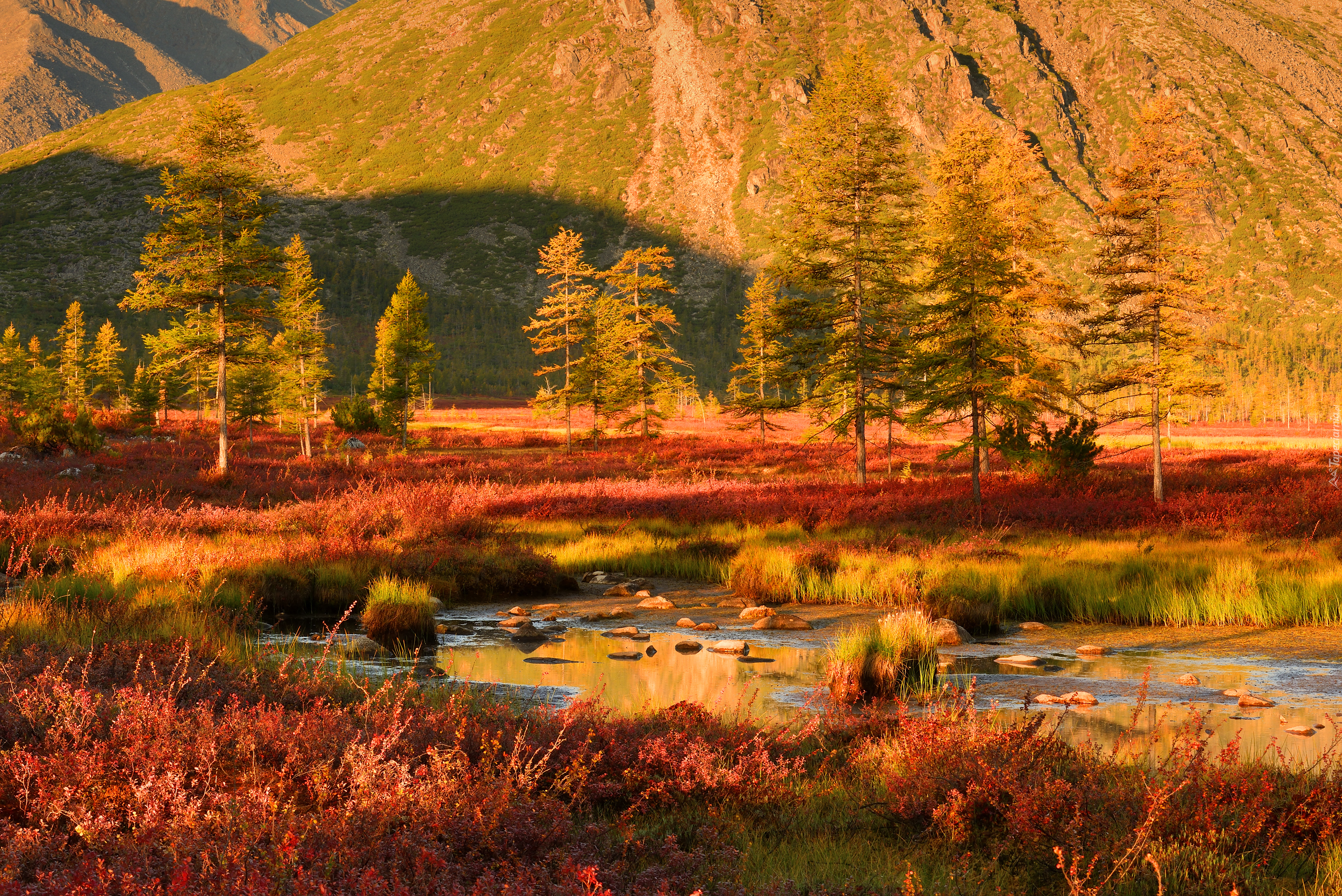 Edytor tapety: Czerwono-żółta roślinność jesienią na Kołymie