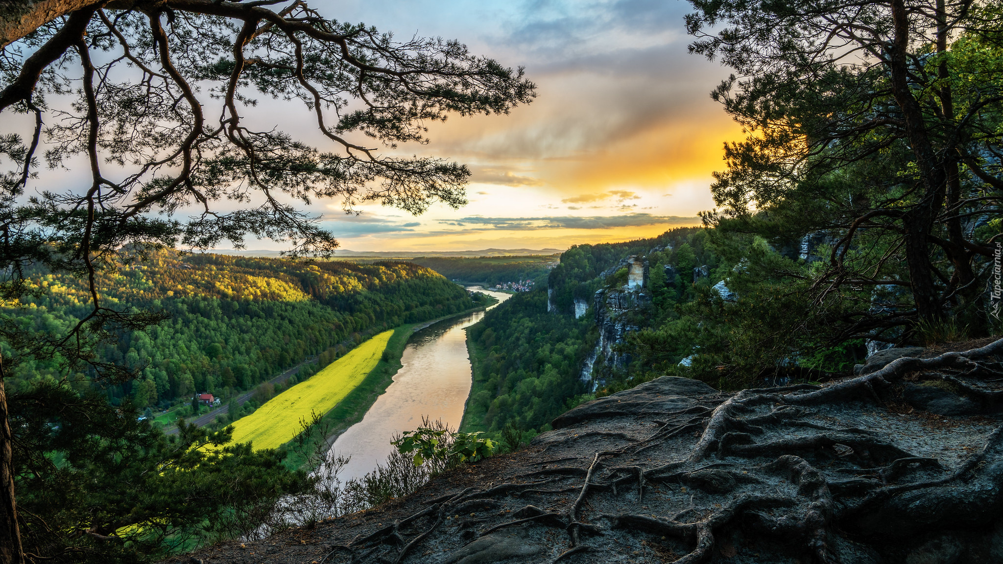 Edytor tapety: Widok z formacji Bastei na dolinę Łaby