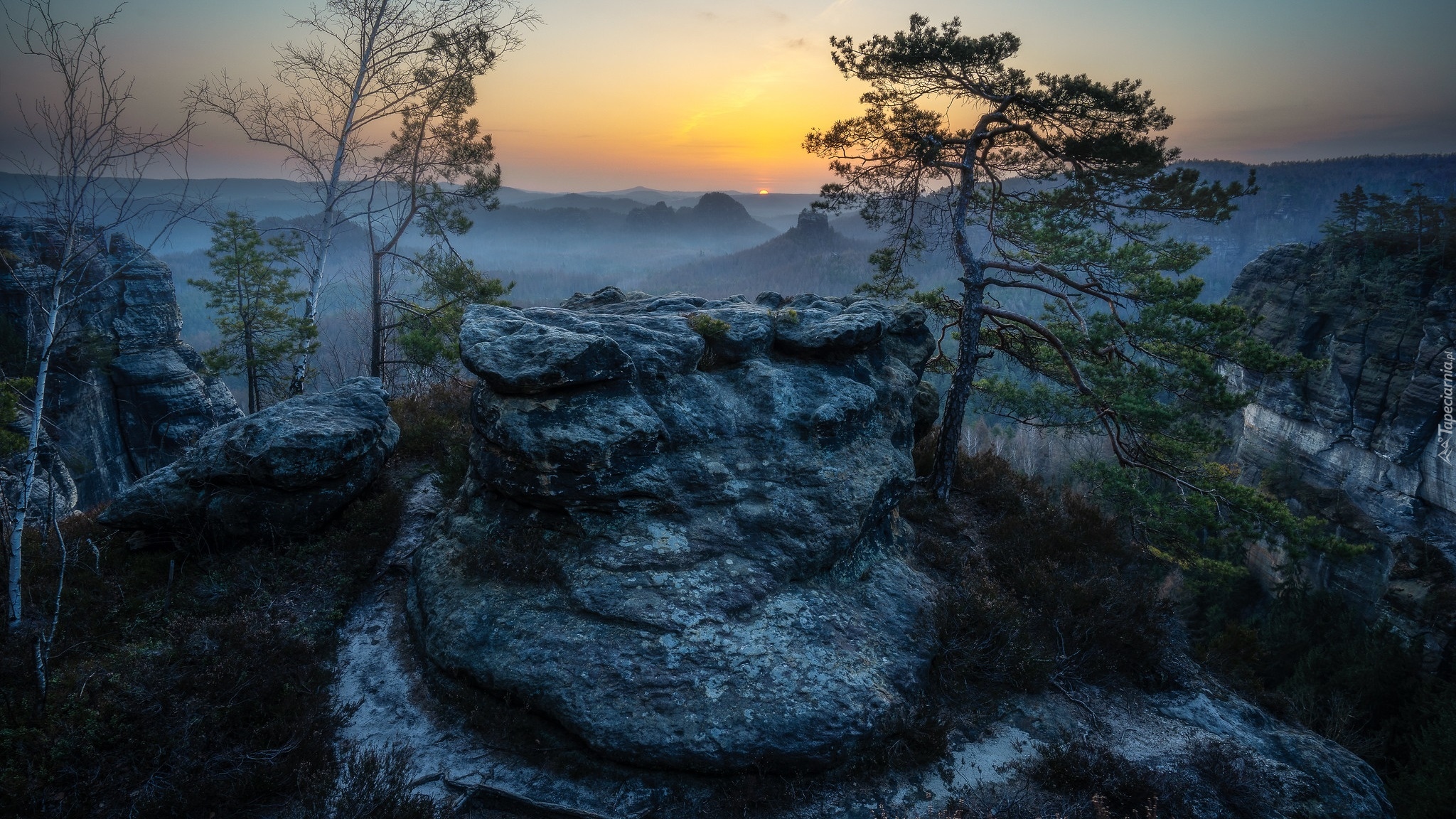 Edytor tapety: Mglisty poranek w górach
