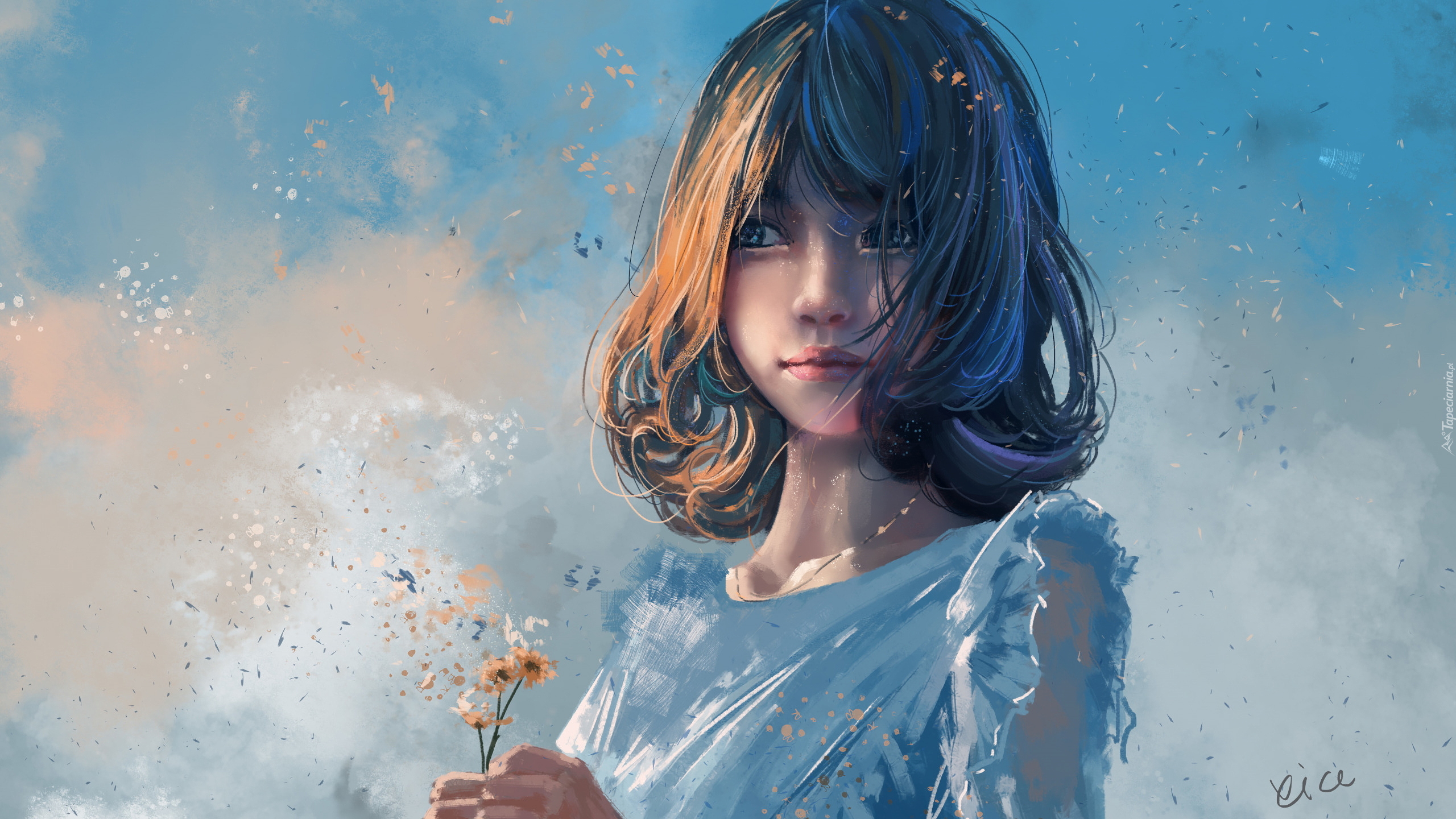 Edytor tapety: Dziewczynka z kwiatkami w grafice