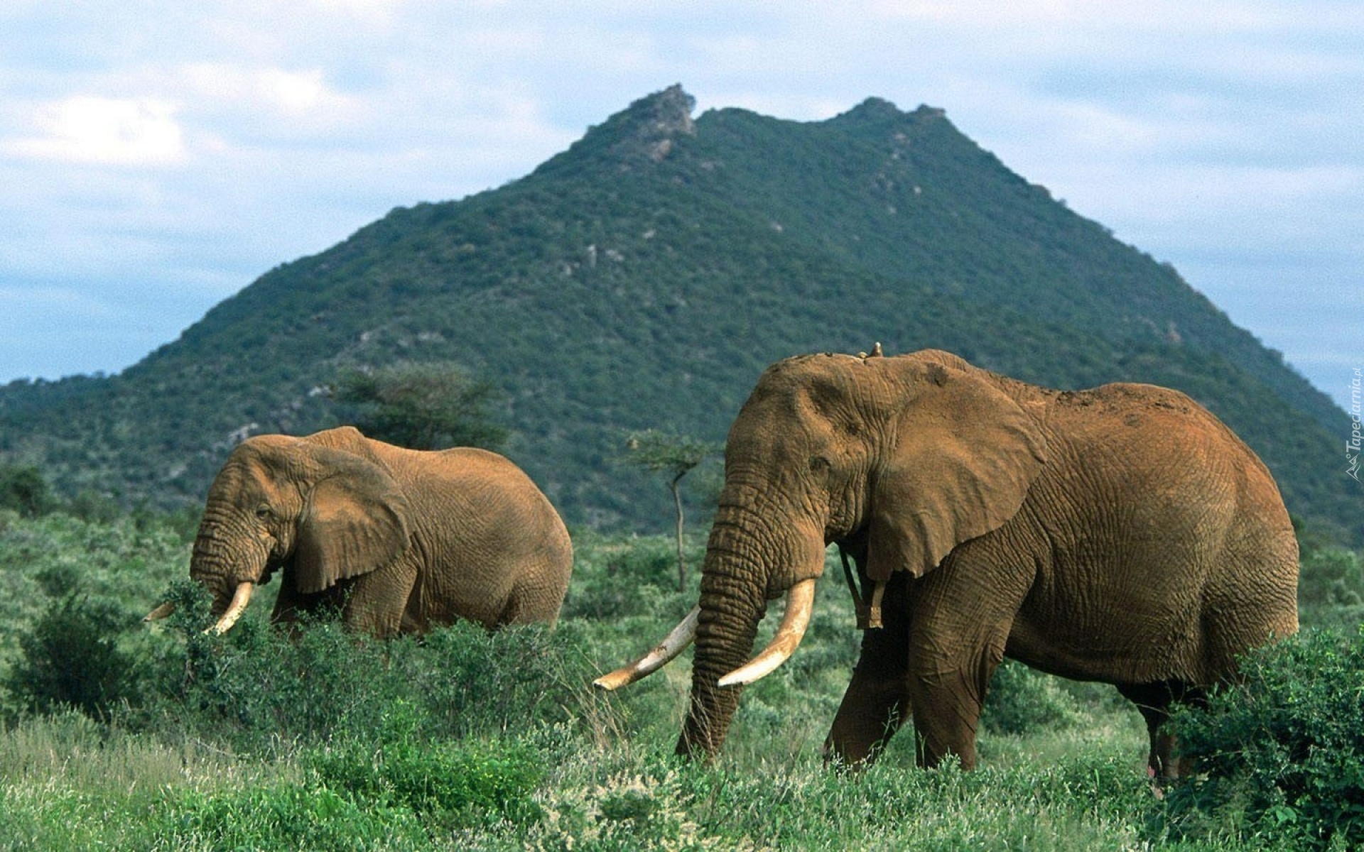 Edytor tapety: słonie, kły, góra