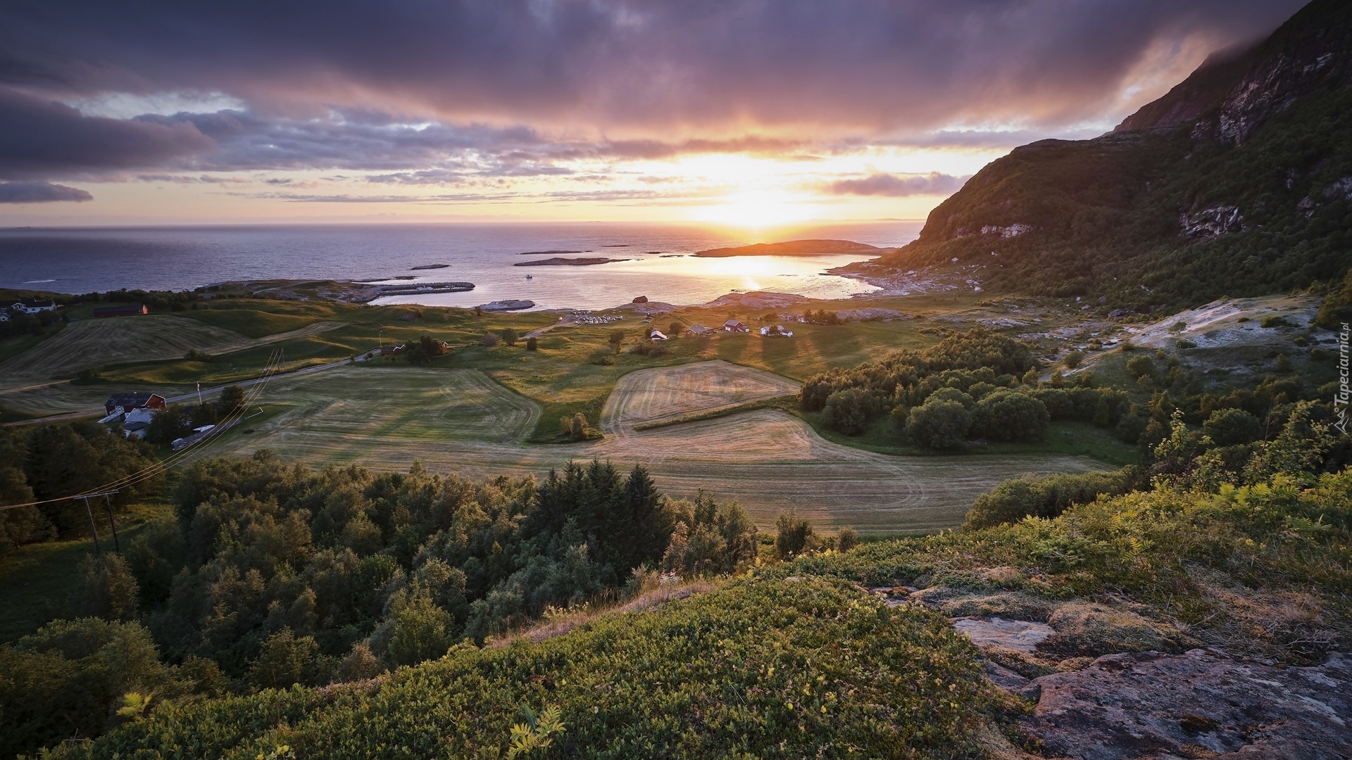 Edytor tapety: Mjelle nad morzem w Norwegii o wschodzie słońca