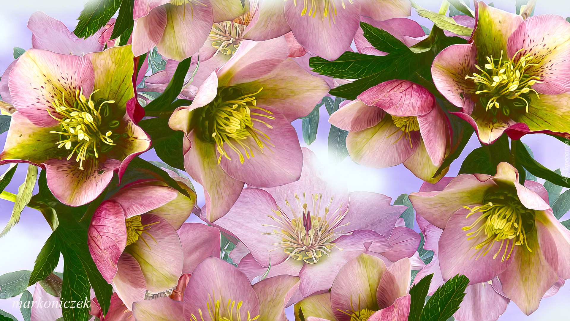 Edytor tapety: Kwiaty różowego ciemiernika w grafice