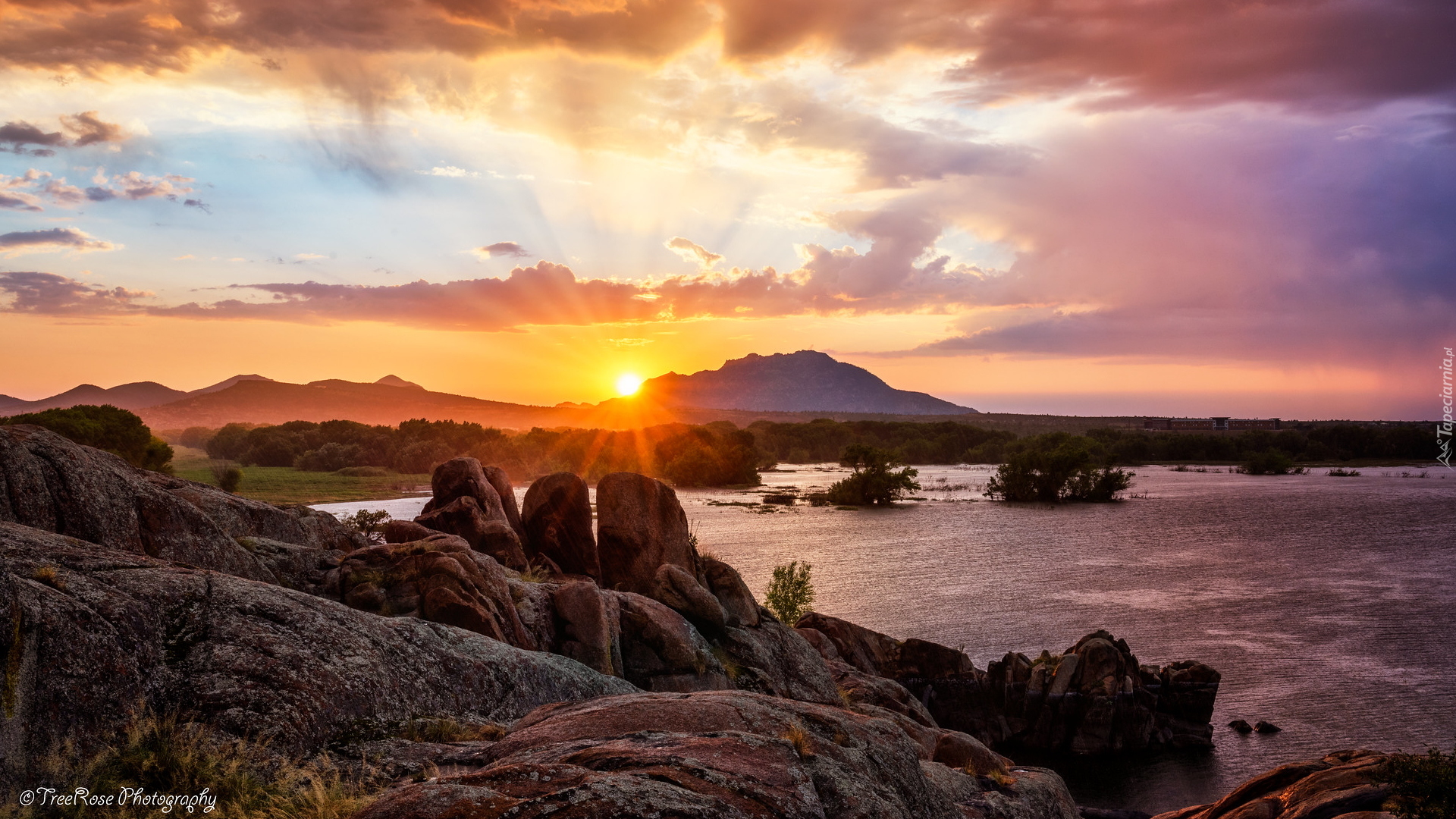Edytor tapety: Skały i jezioro Willow Lake o zachodzie słońca