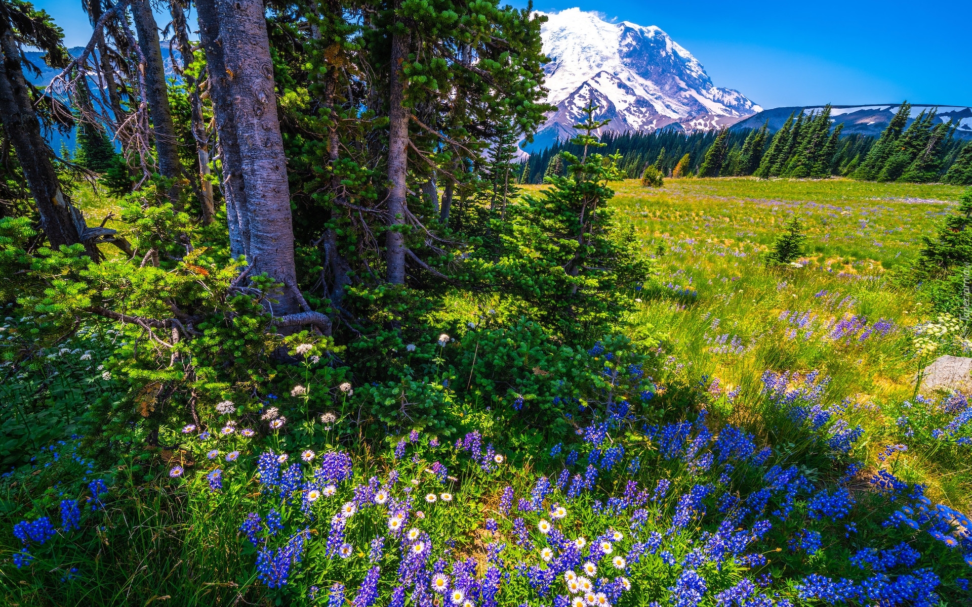 Edytor tapety: Widok z łąki na stratowulkan Mount Rainier