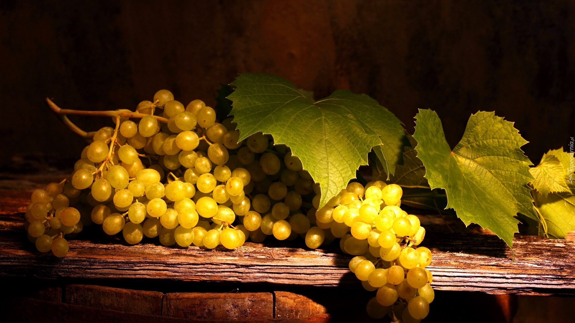 Edytor tapety: Winogrona na desce w blasku światła