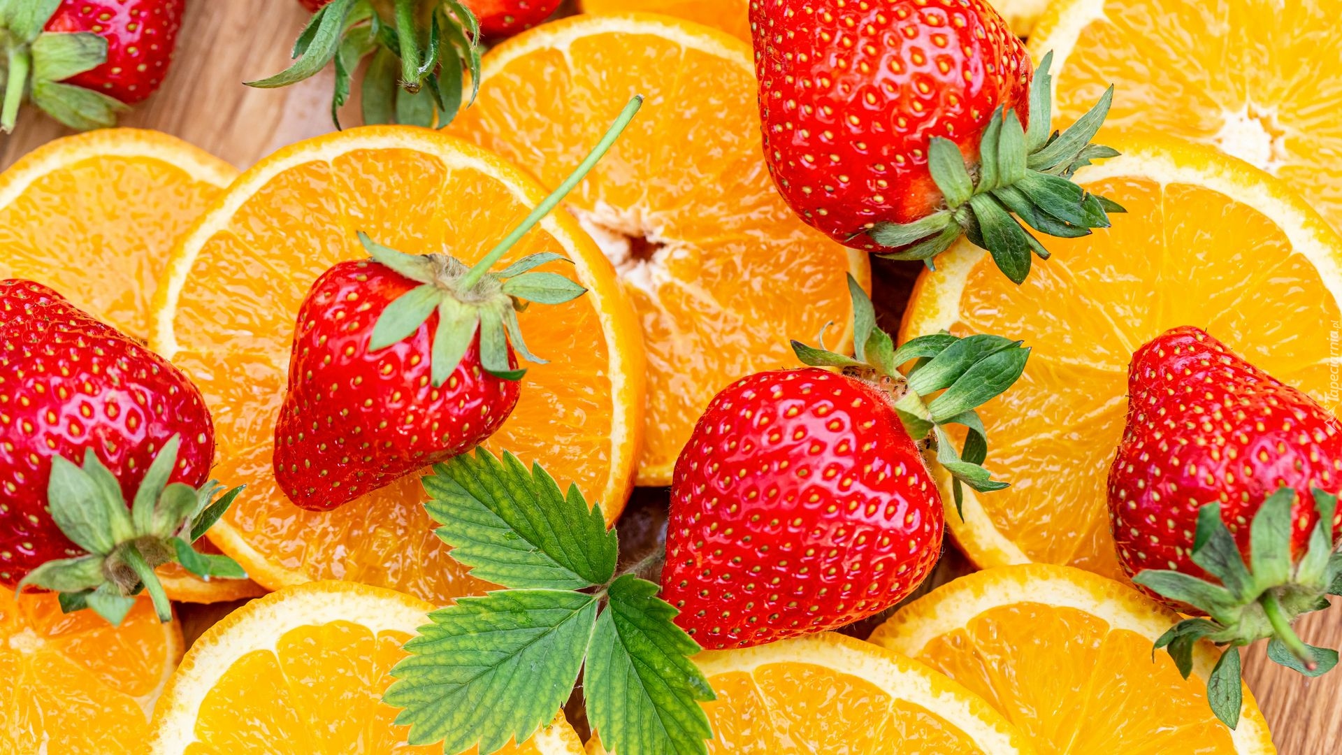 Edytor tapety: Truskawki na plastrach pomarańczy