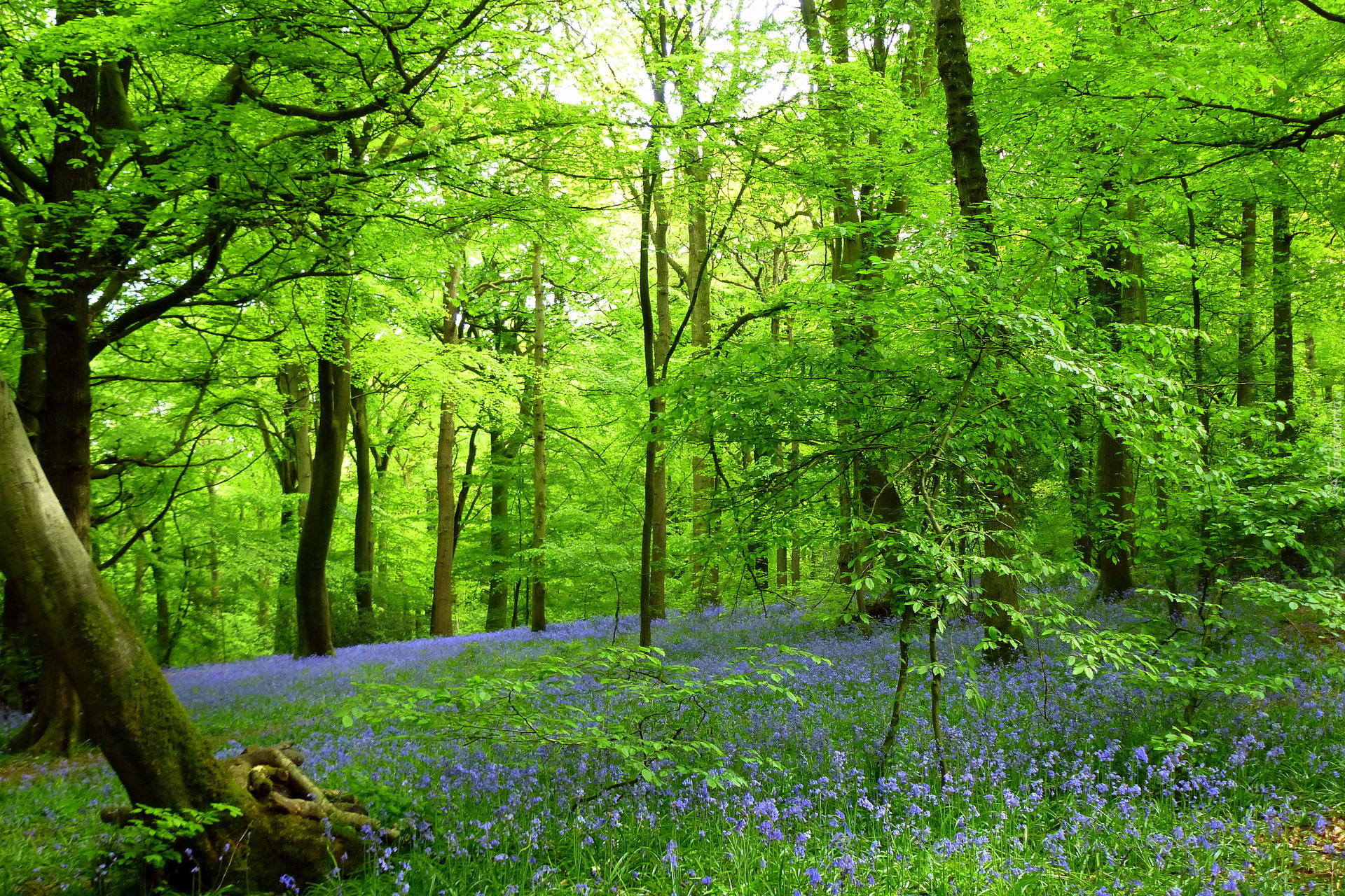Edytor tapety: Kwitnące kwiaty w zielonym lesie