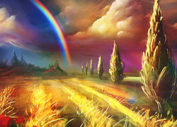 Edytor tapety: Tęcza nad polem w grafice