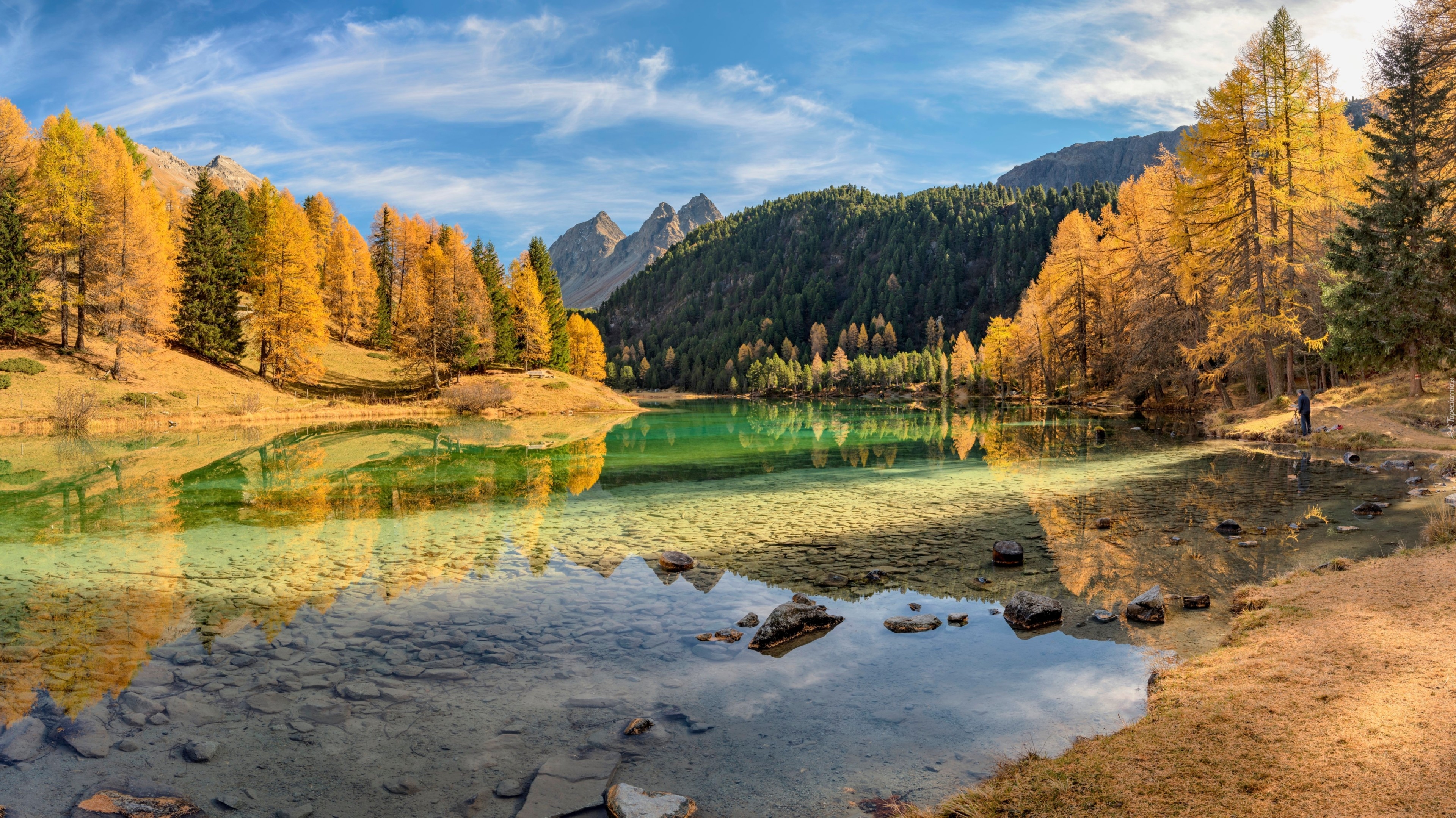 Edytor tapety: Jezioro Lake Palpuogna w Szwajcarii jesienią