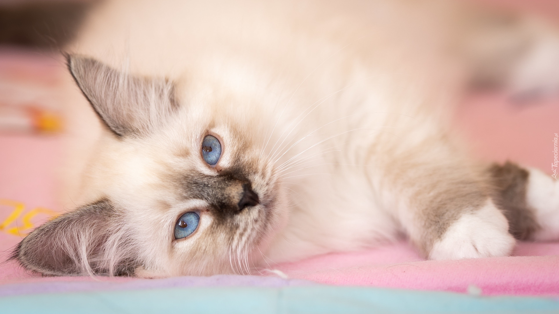 Edytor tapety: Leżący niebieskooki kot
