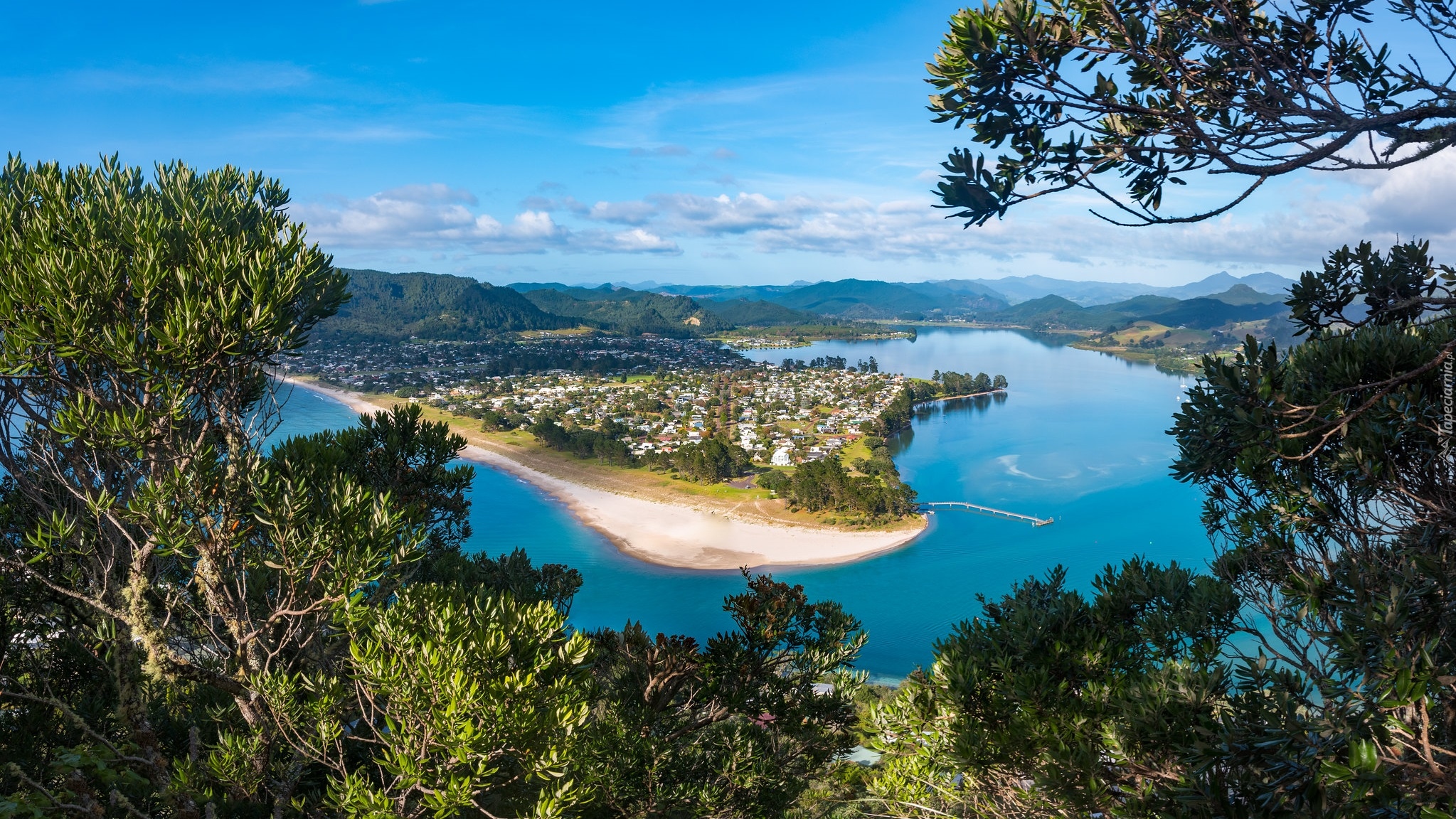 Edytor tapety: Widok zza drzew na nowozelandzkie miasto Pauanui