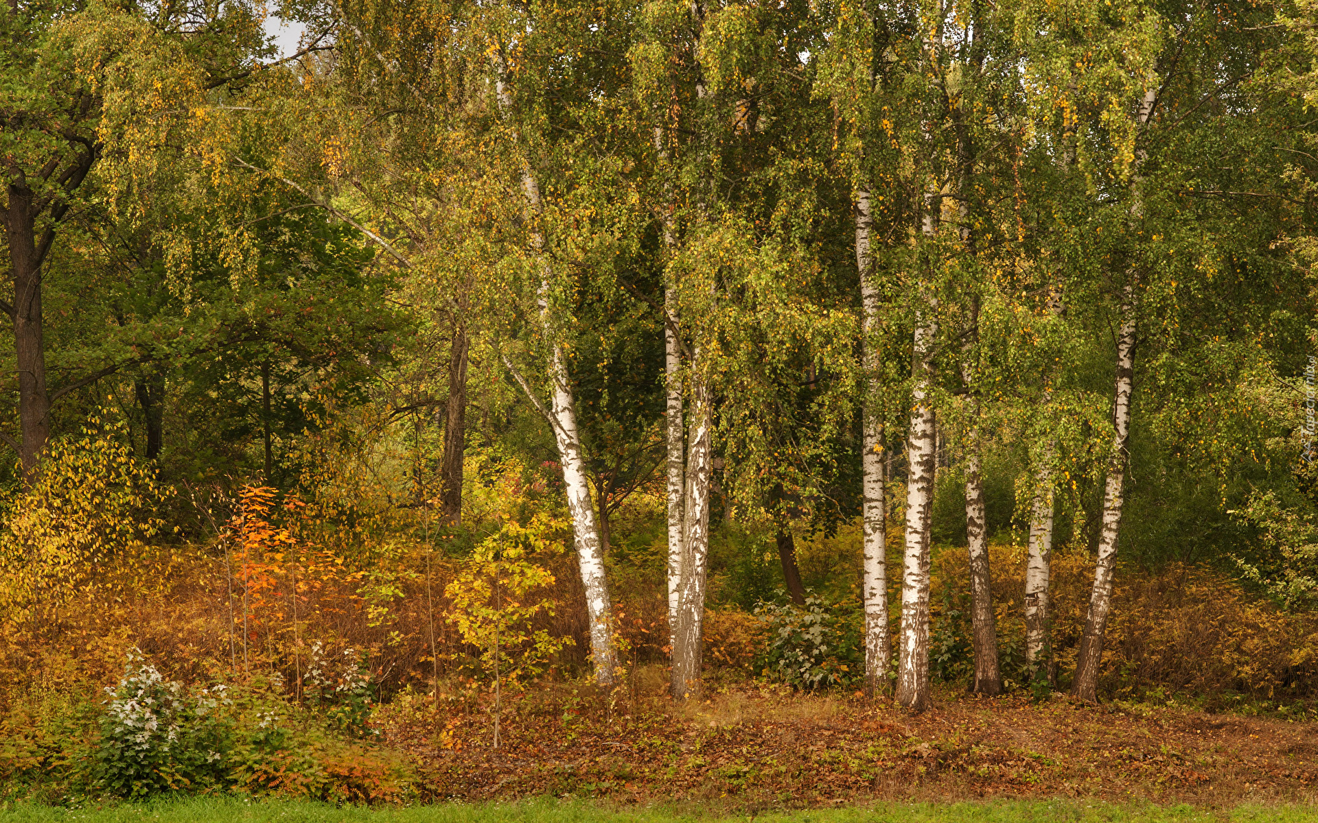 Edytor tapety: Brzozy na skraju jesiennego lasu