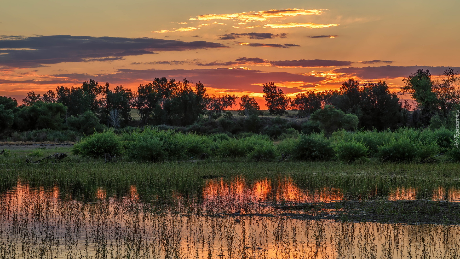 Edytor tapety: Jezioro Lake Chatfield porośnięte trawą