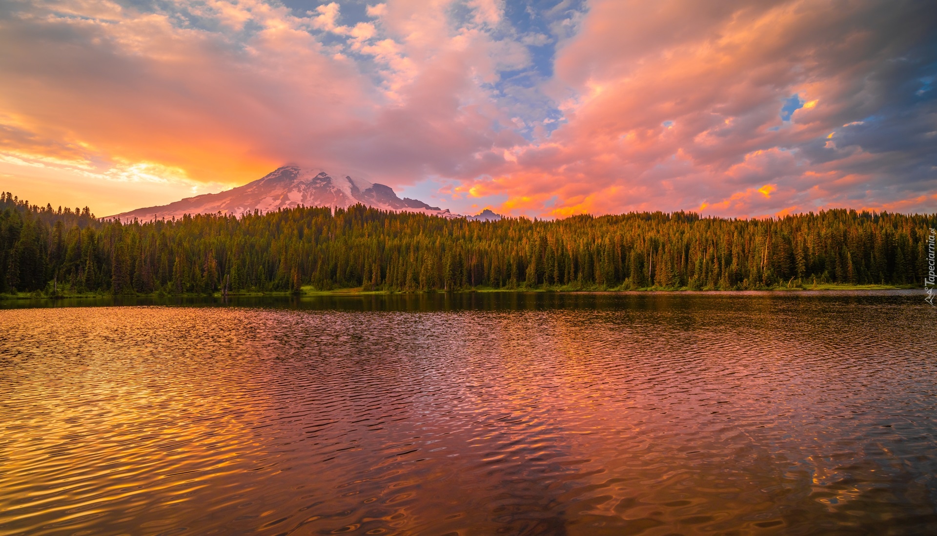 Edytor tapety: Jezioro i stratowulkan Mount Rainier w oddali