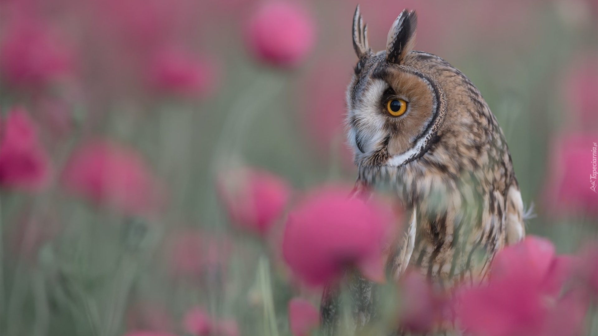 Edytor tapety: Sowa uszata na rozmytym tle