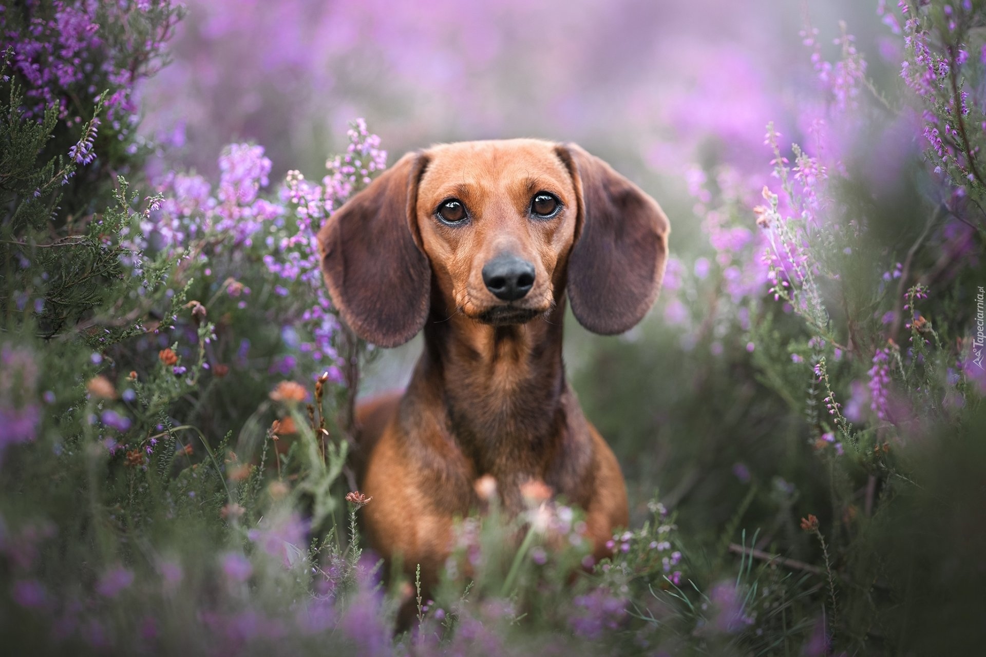 Edytor tapety: Jamnik we wrzosach