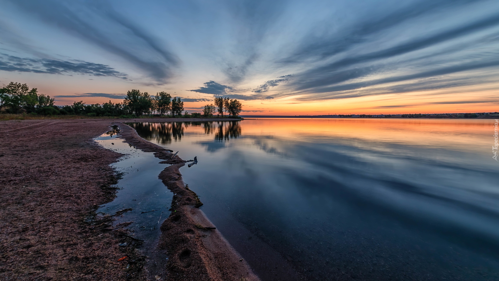 Edytor tapety: Wschód słońca nad jeziorem Chatfield Lake w Kolorado