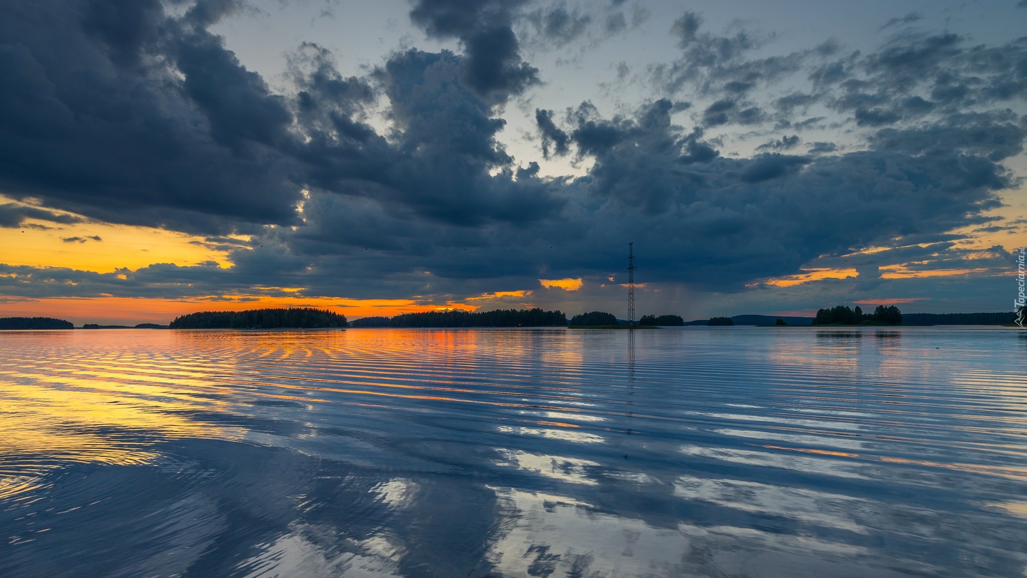 Edytor tapety: Zachmurzone niebo nad jeziorem wieczorową porą