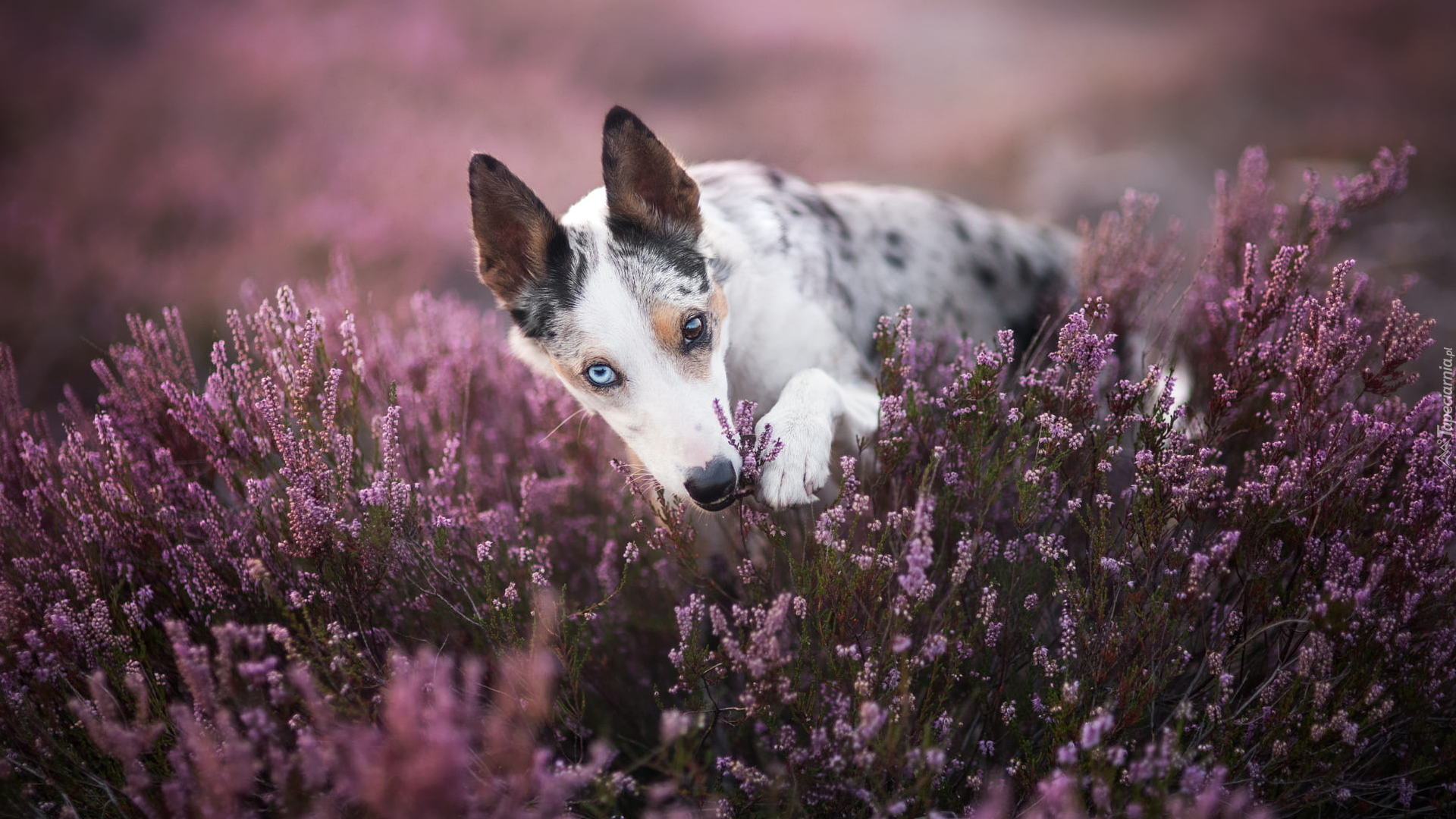 Edytor tapety: Krótkowłosy border collie pośród wrzosów