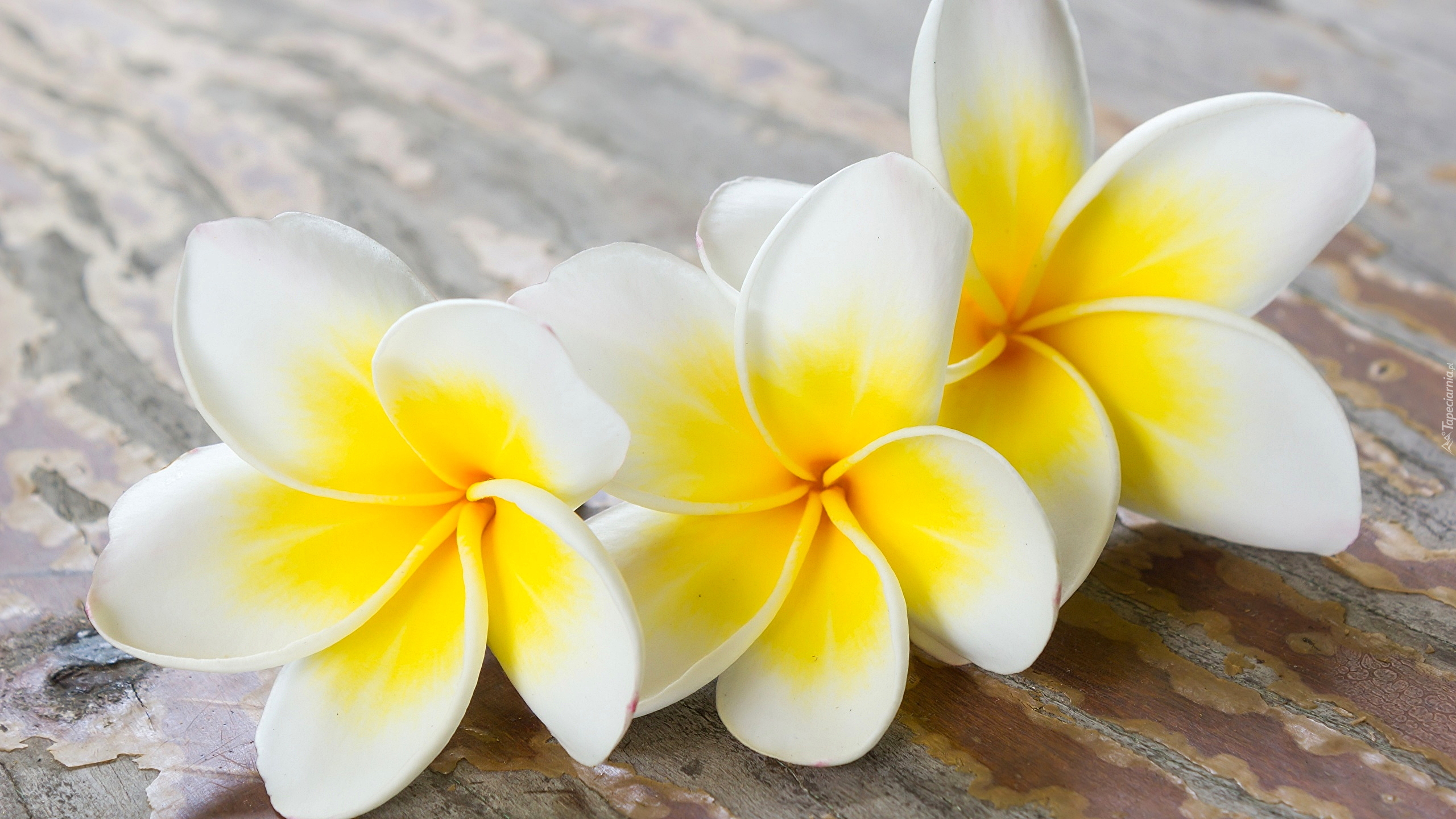 Edytor tapety: Trzy plumerie na deskach