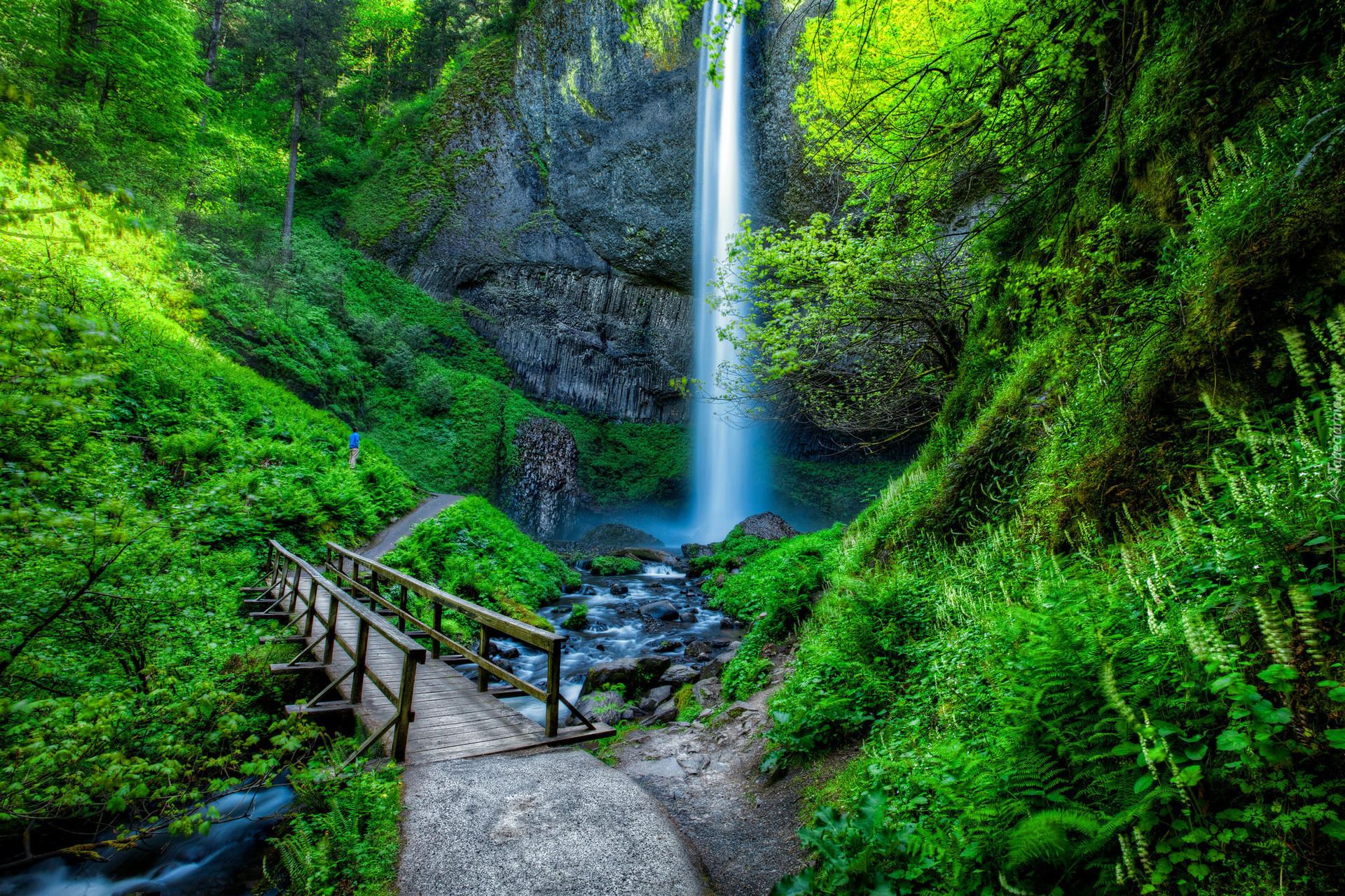 Edytor tapety: Drewniany most obok wodospadu Latourell Falss w Oregonie