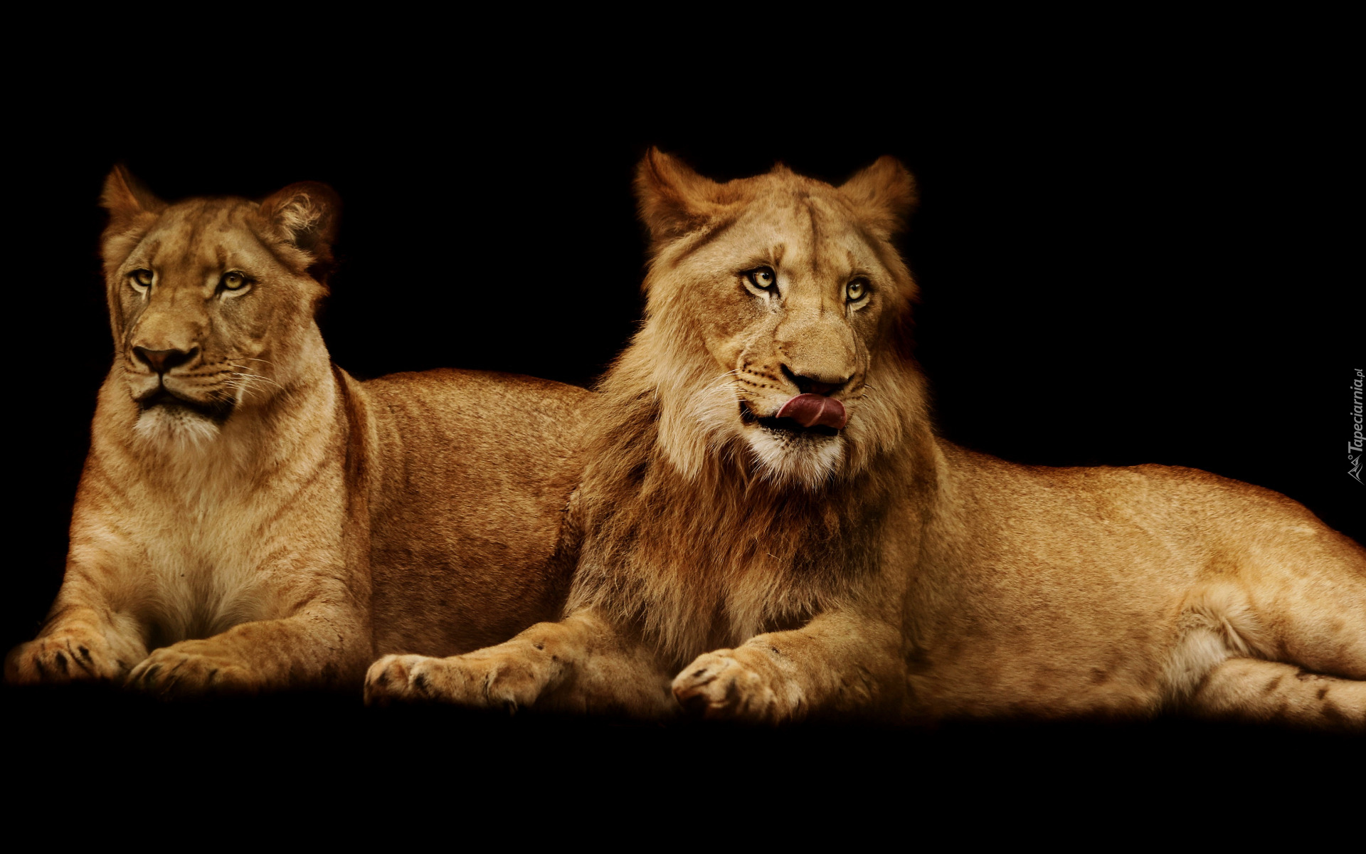 Edytor tapety: Leżący młody lew i lwica