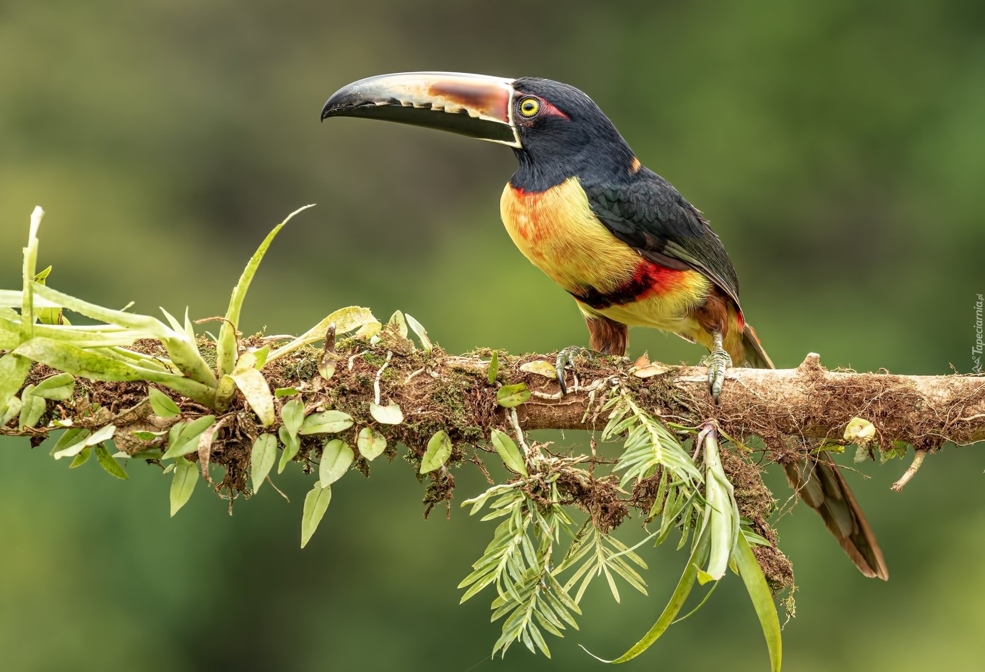 Edytor tapety: Tukan na liściastej gałęzi