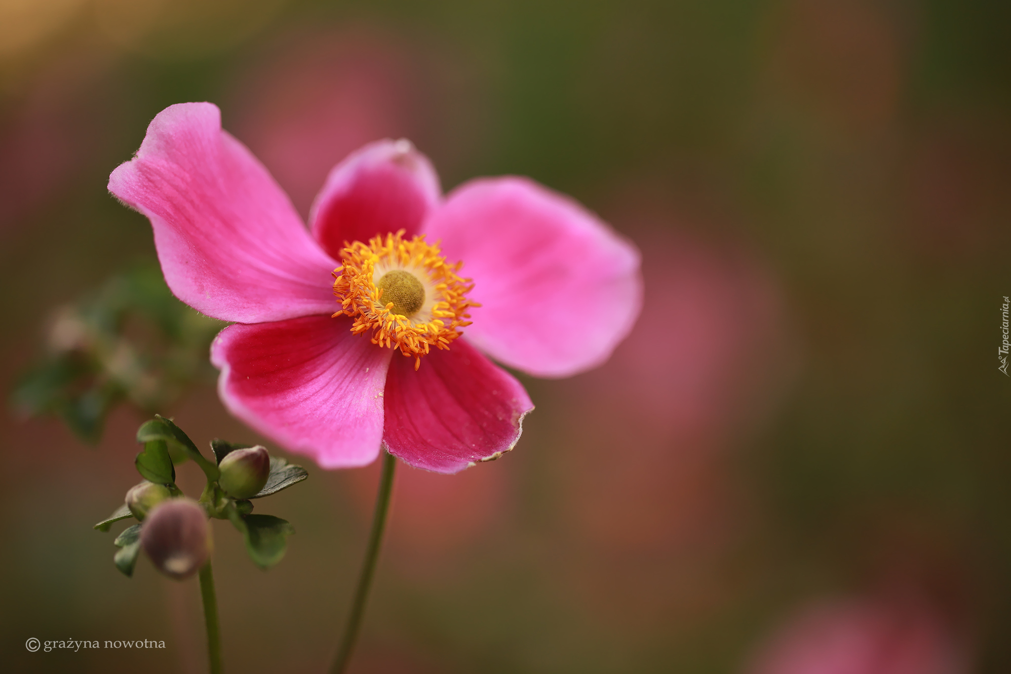 Edytor tapety: Rozkwitnięty zawilec japoński z pąkami