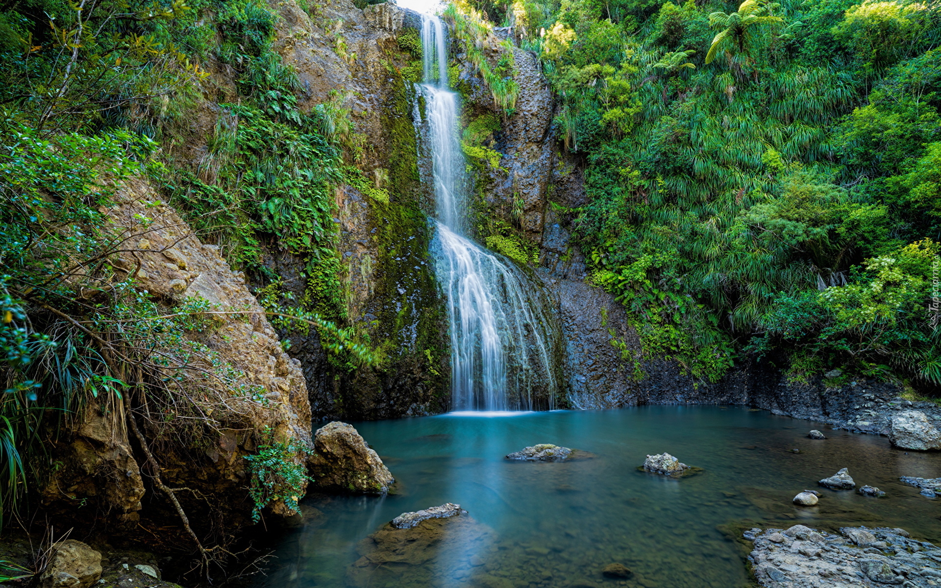 Edytor tapety: Wodospad Kitekite Falls w Nowej Zelandii