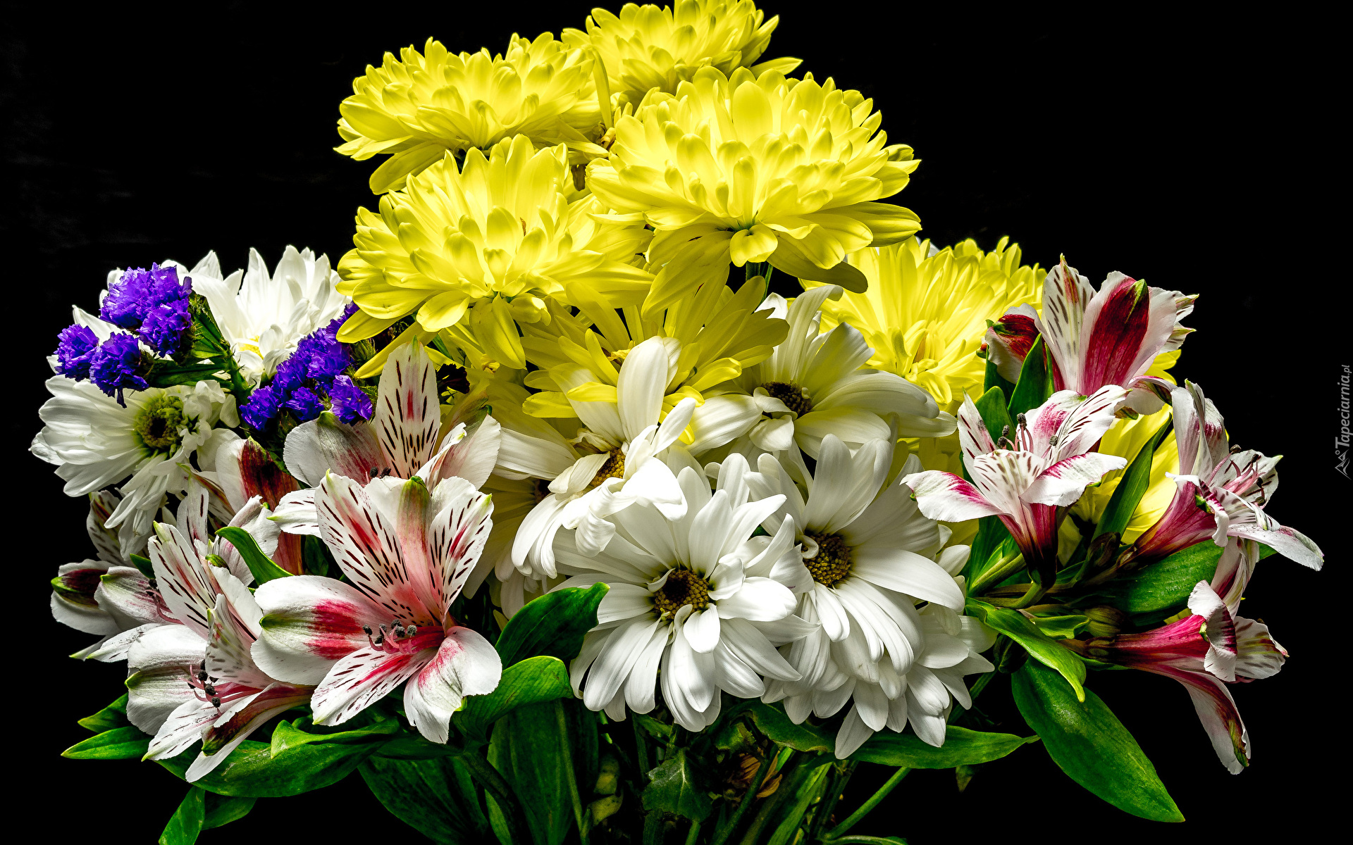 Edytor tapety: Chryzantemy i alstremerie w bukiecie