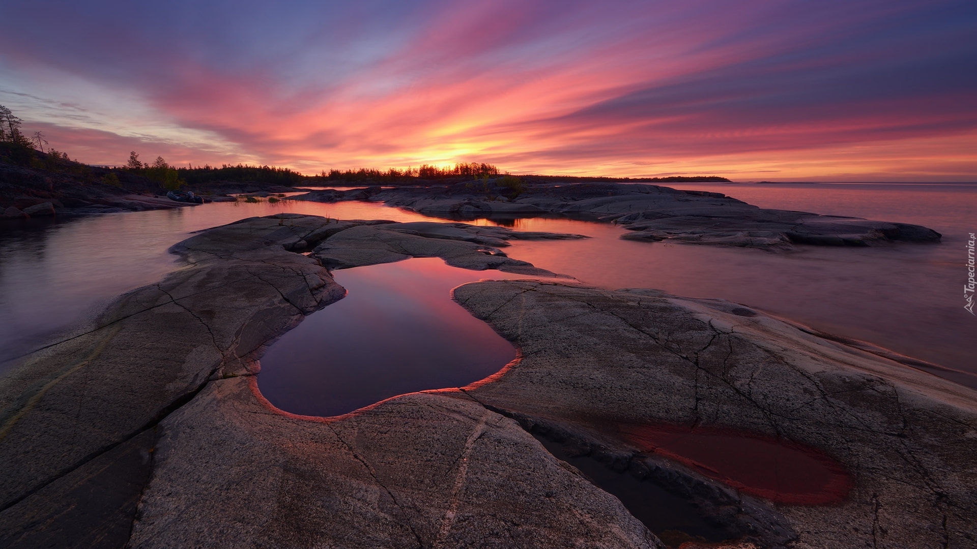 Edytor tapety: Jezioro Ładoga pod różowym niebem