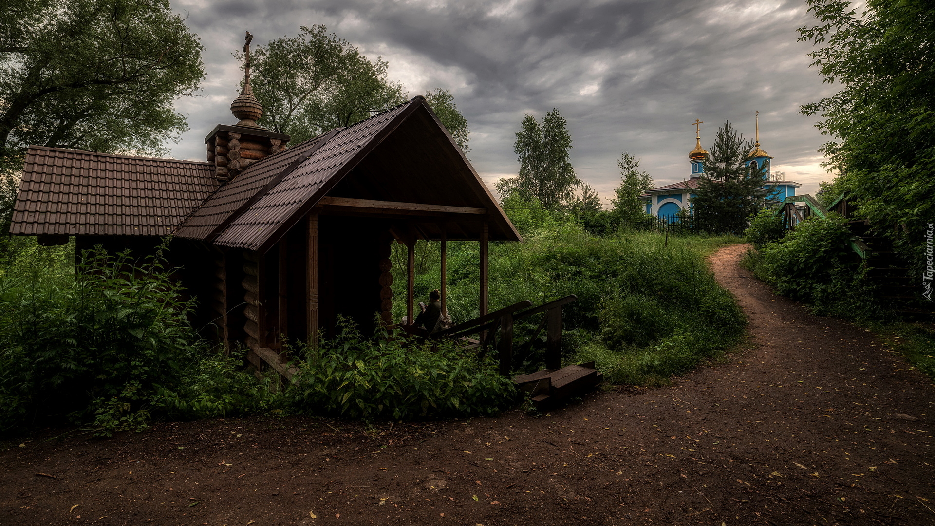 Edytor tapety: Drewniana kaplica przy ścieżce do cerkwi