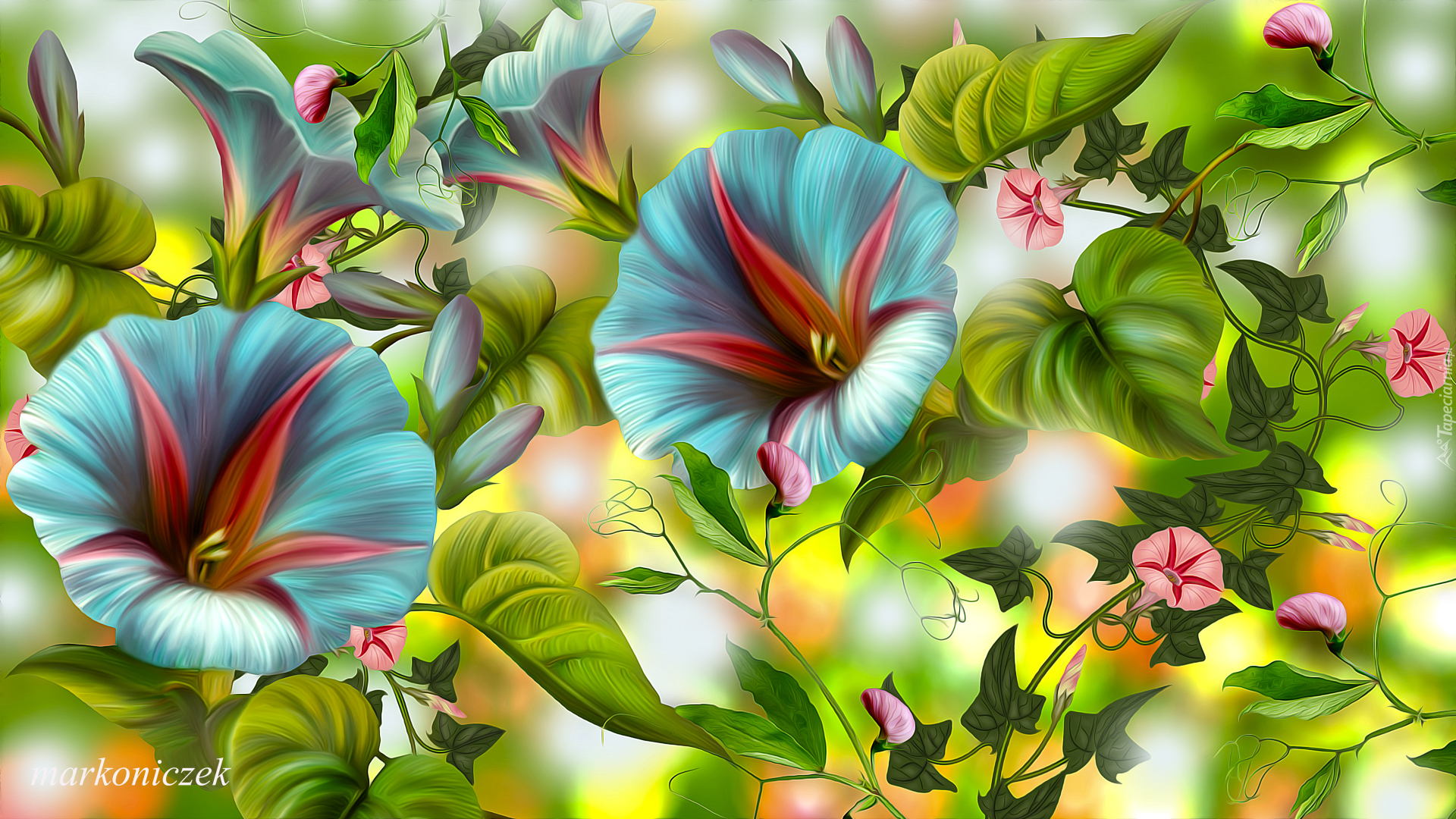 Edytor tapety: Niebieskie powoje w grafice