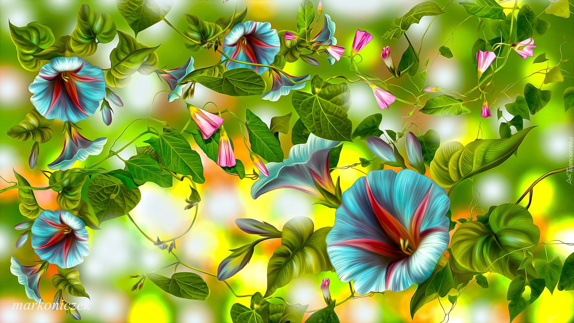 Edytor tapety: Niebieski powój w grafice