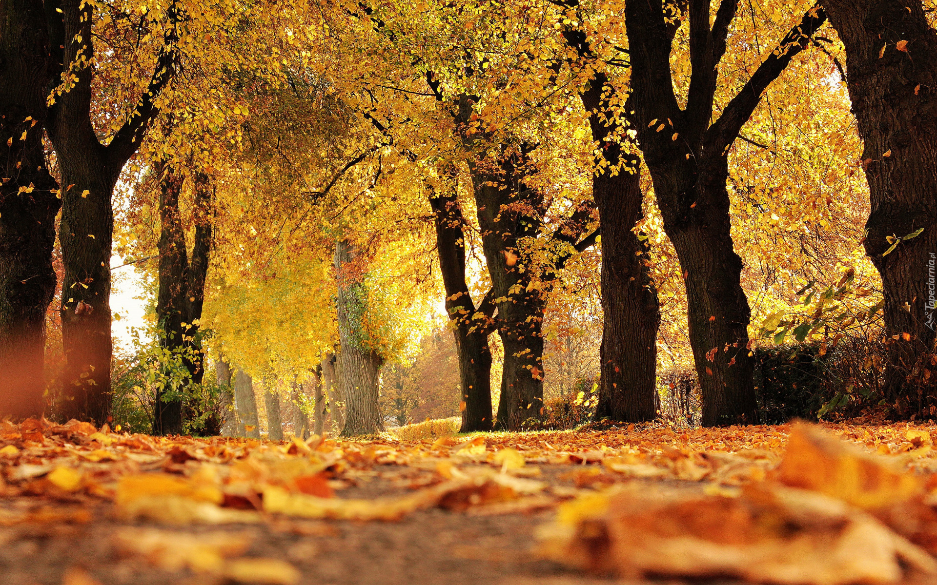 Edytor tapety: Drzewa z pożółkłymi liśćmi w parku
