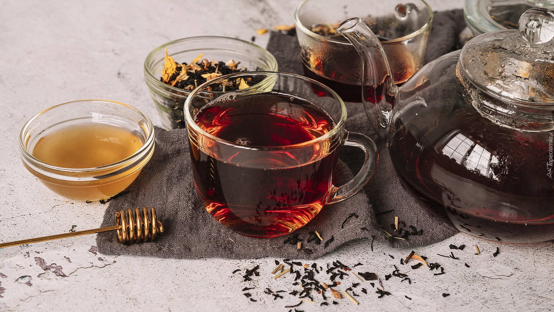 Edytor tapety: Herbata w dzbanku i filiżance