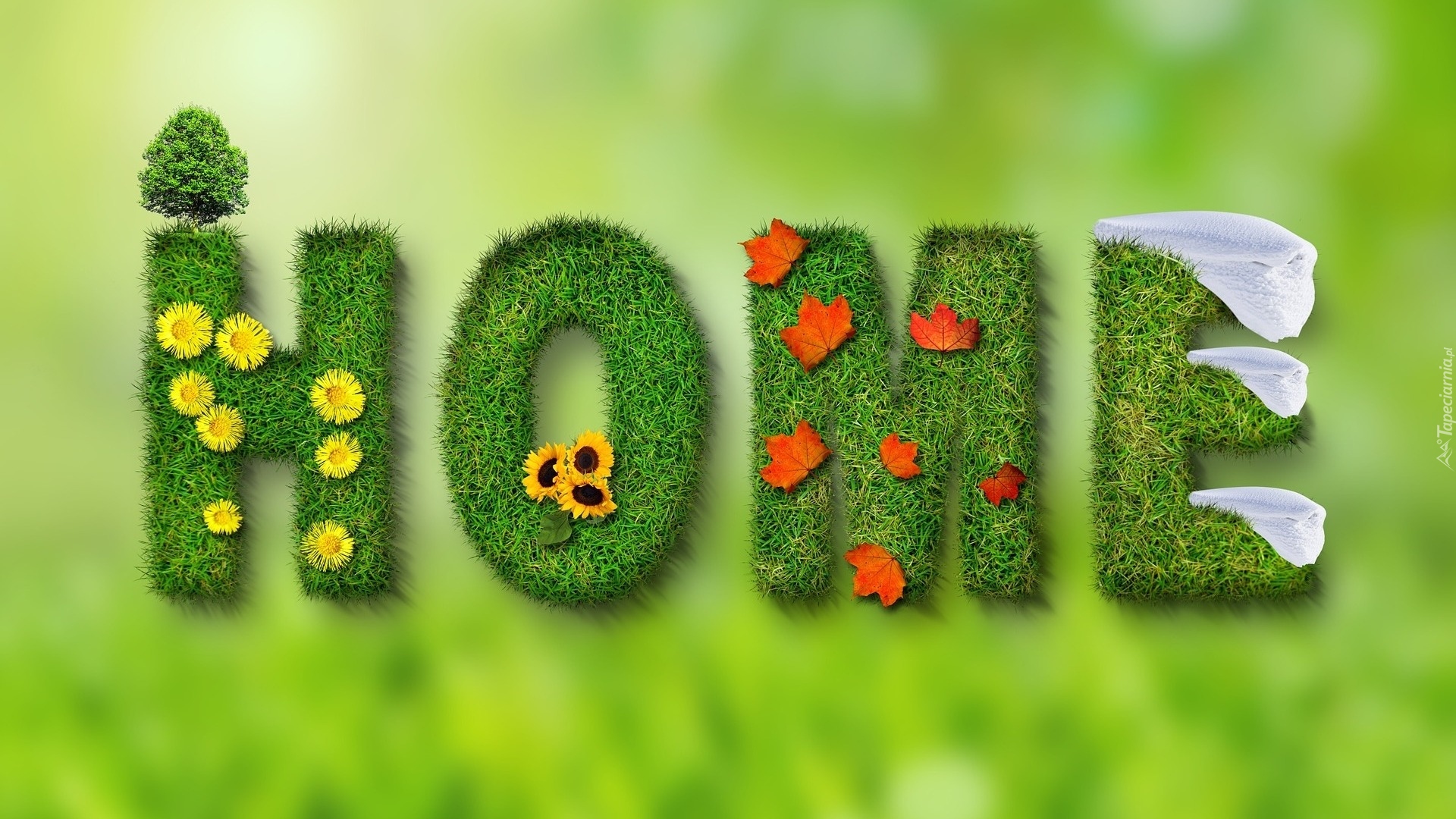 Edytor tapety: Napis home porośnięty trawą