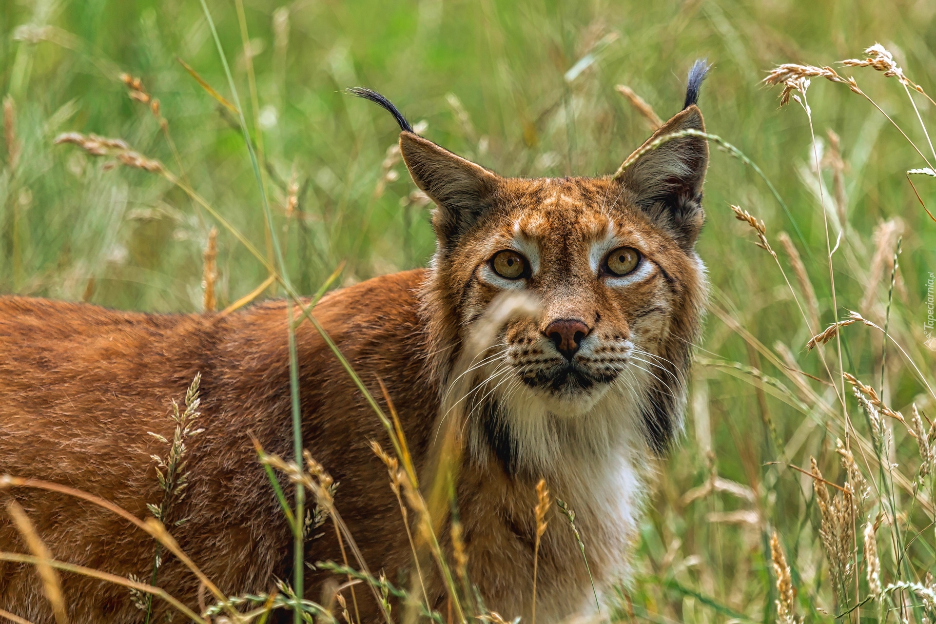Edytor tapety: Ryś w źdźbłach trawy