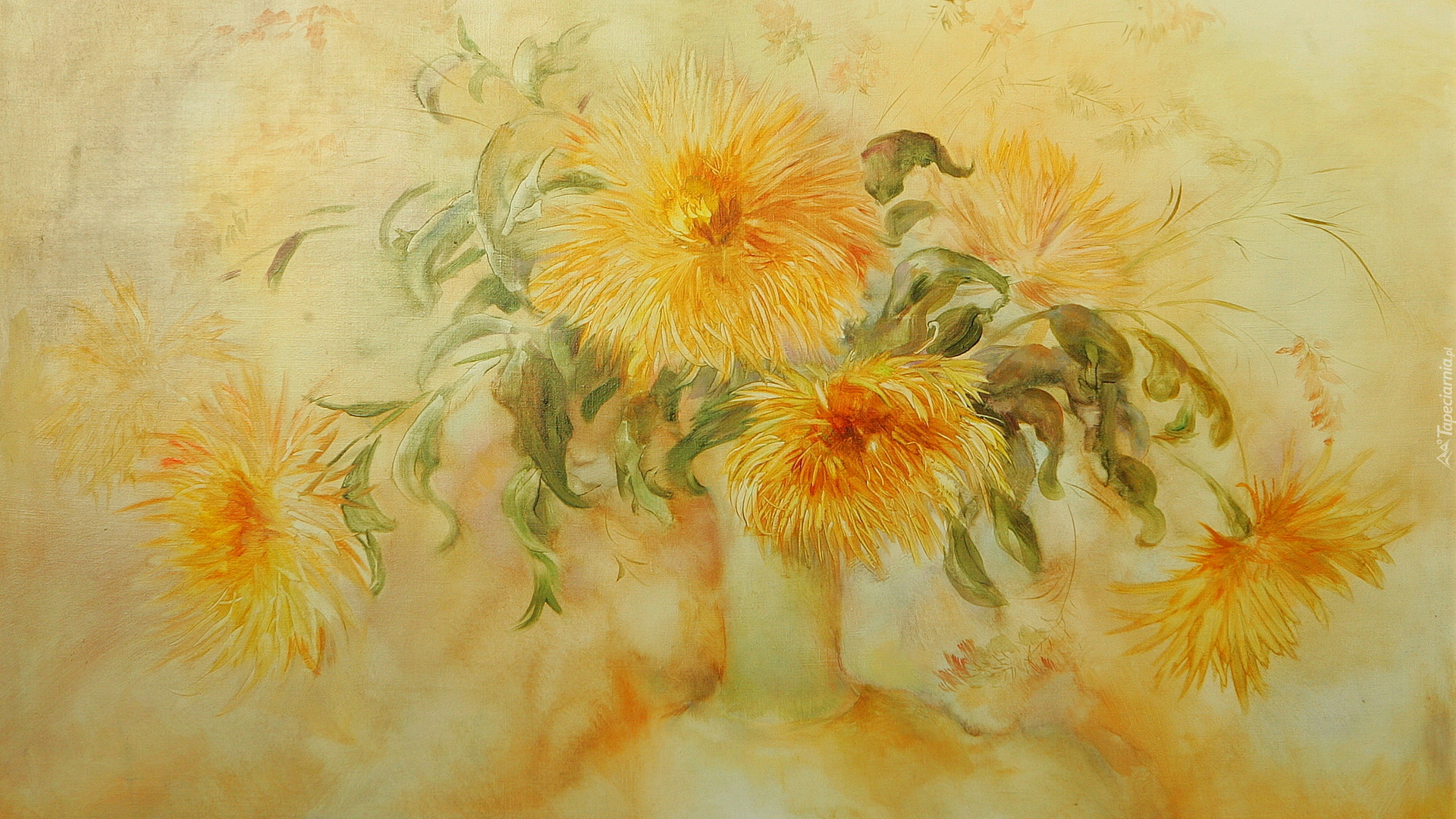 Edytor tapety: Żółte astry w wazonie