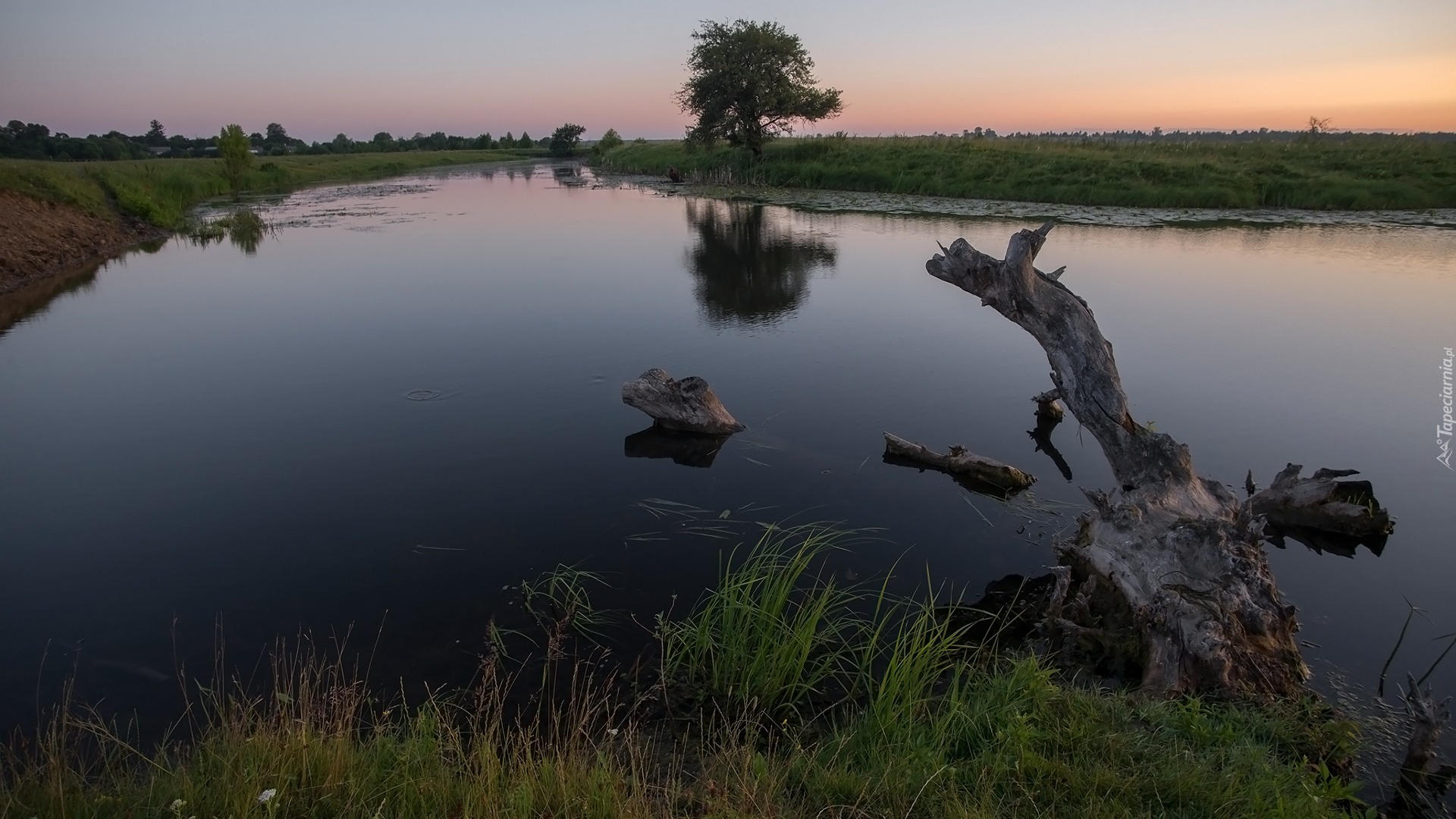 Edytor tapety: Kłoda drzewa na brzegu rzeki