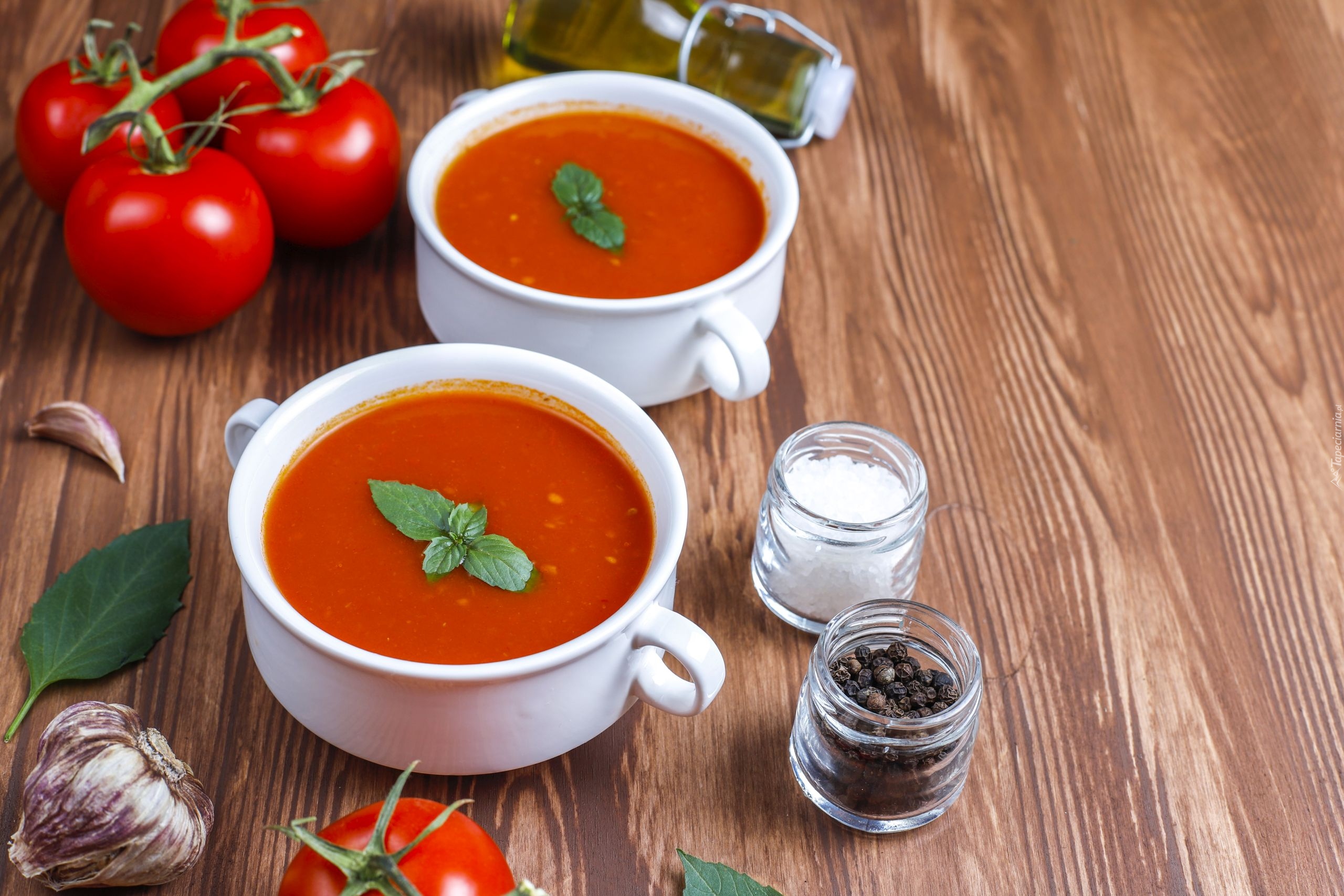 Edytor tapety: Zupa pomidorowa w bulionówkach